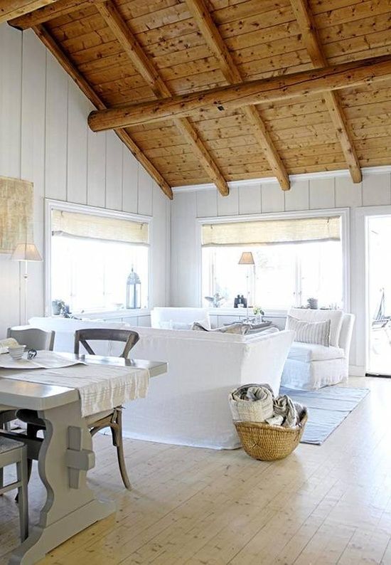 The big debate at our cottage (and that’s the polite way of putting it) is whether to paint the tongue-and-groove bead board white. At the moment, it’s beautifully aged and so cozy in the winter, not to mention an original feature of the 100-year-old place. But it’s a little heavy and dark in the summer, which is when we use the cottage most. Design trends of late would suggest painting it all white and completely brightening up the space. I think a good compromise would be to paint the walls and leave the ceiling.