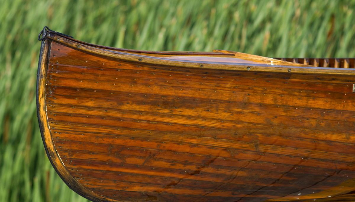 Unfortunately, if the canoe is very badly dried out, it may need to be stripped, bleached, oiled, then dried and varnished. Don’t fibreglass the bottom, no matter how badly you want dry feet. Never mind that slapping fibreglass on an old wooden boat decreases its value; the wood under glass can’t expand or contract. If it gets wet, it will buckle or crack the glass.