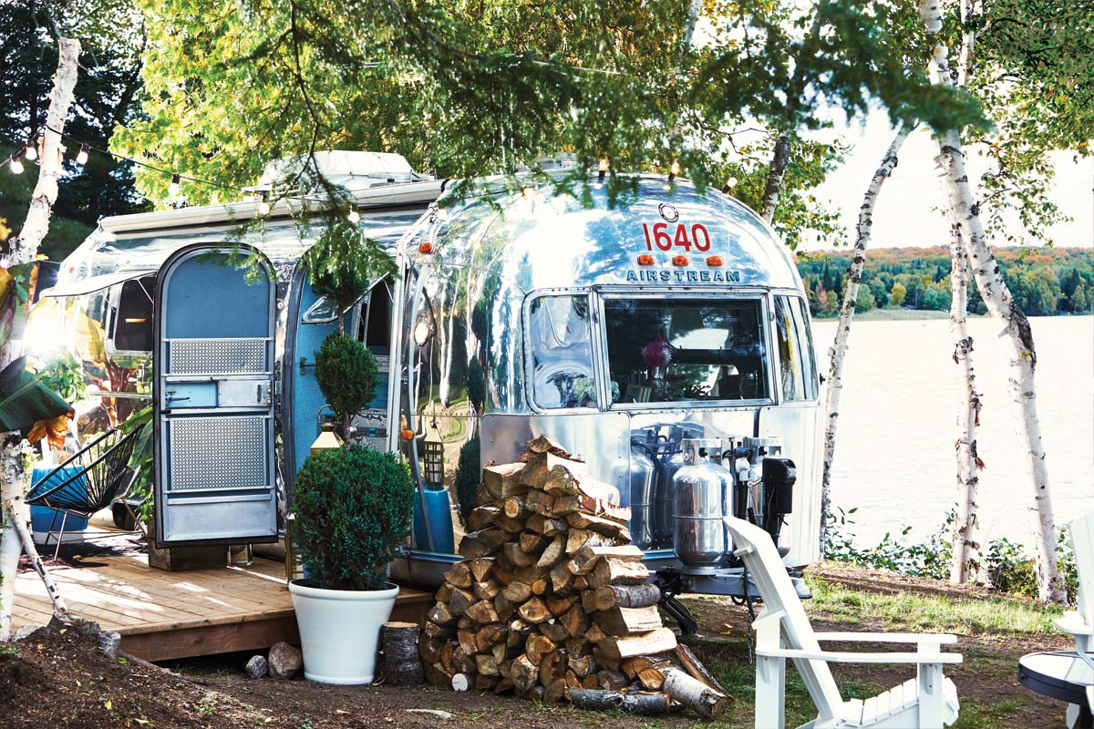Neck-deep in a full renovation on their Bernard Lake, Ont., property, Stéphane Aubin and his partner, David Clemmer, realized they needed a home base. “We were renovating day in and day out, hopping from room to room,” says Stéphane. “It was really getting to us.” He suggested they rent a trailer. David went whole hog and bought a sleek 1971 Airstream to be their crash pad. At first, Stéphane was skeptical—Airstreams don’t grow on trees—but he soon saw the benefits. To a cottager, a trailer is a ready-made bunkie on wheels, complete with kitchen and bath (without the hassle of rigging up your own plumbing and electricity). Now, with the renos behind them, Stéphane and David’s Airstream is their permanent guest cabin and the most popular spot for their many visitors each summer. “It was one of our best purchases,” says Stéphane. “It’s my favourite place to sit and watch the sun set over the lake.”