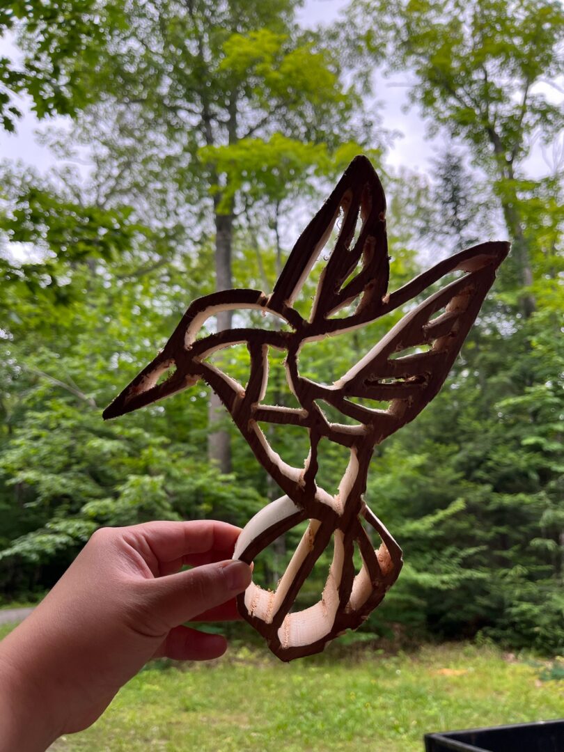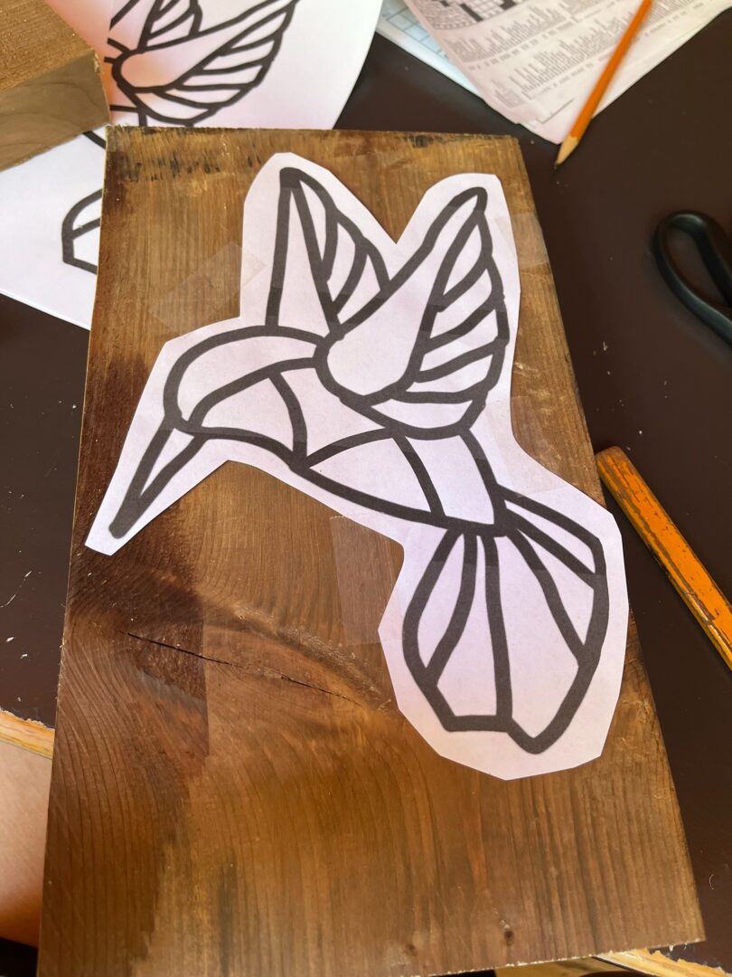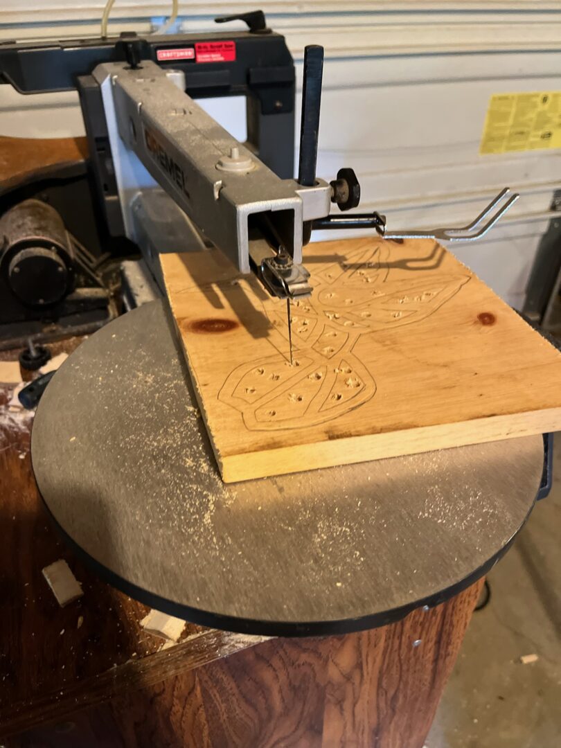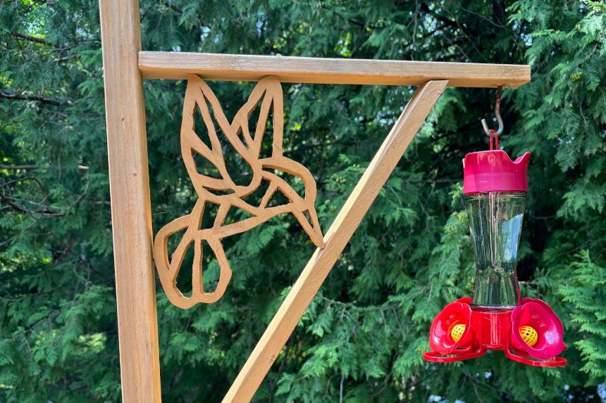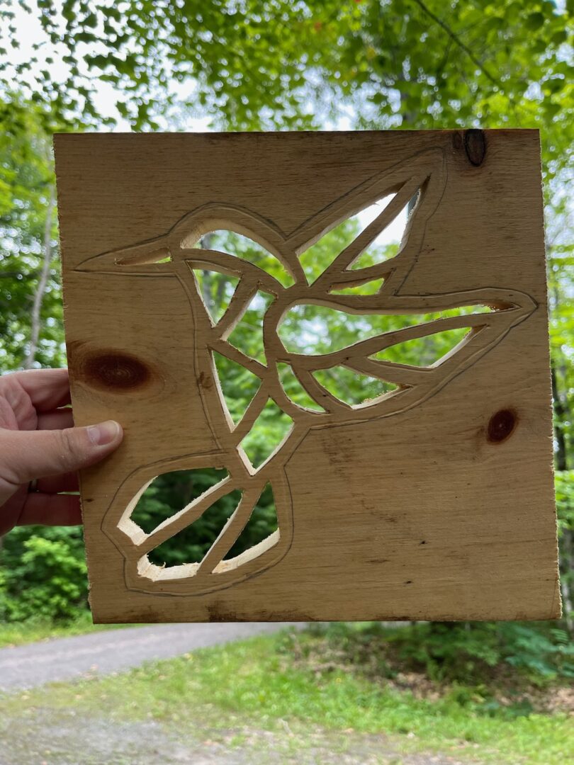In 2022, Cynthia started woodworking by pitching-in with her husband and father-in-law on cottage projects. None of them knew how to use a scroll saw, but Cynthia decided she wanted to learn—without their help. “I’m going to figure this one out on my own,” she said at the time. She watched internet videos for guidance and designed a cutting pattern based on a stained-glass hummingbird. “I changed a few lines on the inside to make it a bit easier,” she says.
