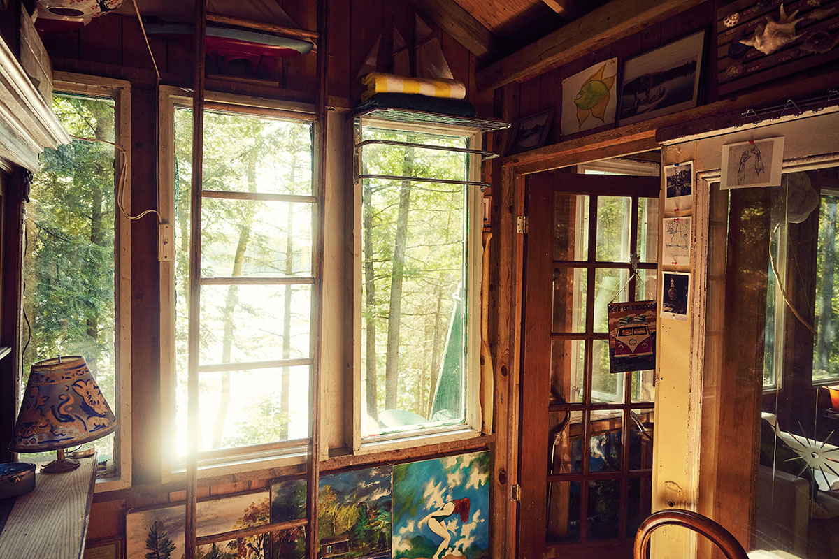 The property remains densely treed. A “turbo-charged beaver,” as Paul describes the animal, has taken out a few cedars in recent years, but there’s still plenty of greenery to hide what’s now the main cottage building and especially its predecessor, which was finished in 1999. Paul leads me along a narrow path, up a hill. “For whatever reason, I decided to build it way back here,” he says. “I was told you have to build a hundred feet back from the lake, but I didn’t really understand the land all that well and chose this place kind of randomly.” It’s certainly a secluded spot, about twice as far inland as required by law; you’d more readily expect to find a poaching blind or a moonshining still at the end of the trail. But that just adds to the fairy tale quality of the tiny abode (fashioned long before the term “tiny abode” became a hashtag) that awaits you.