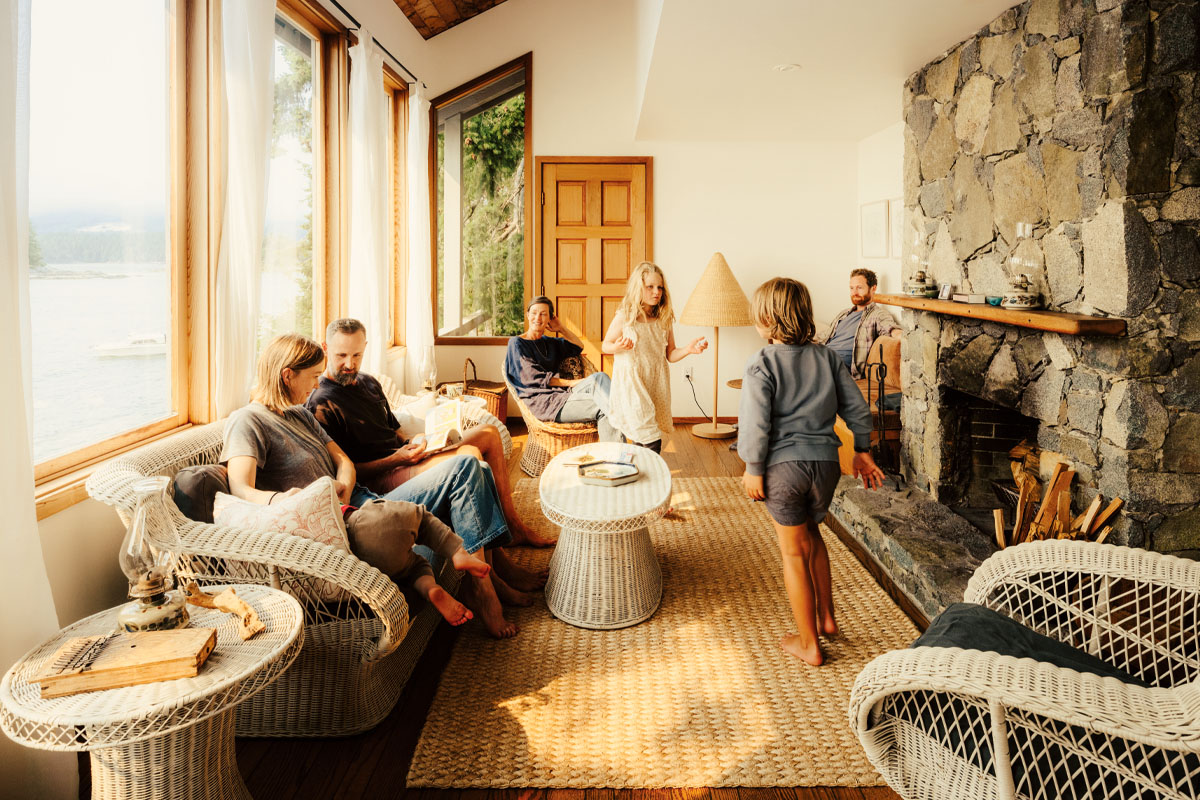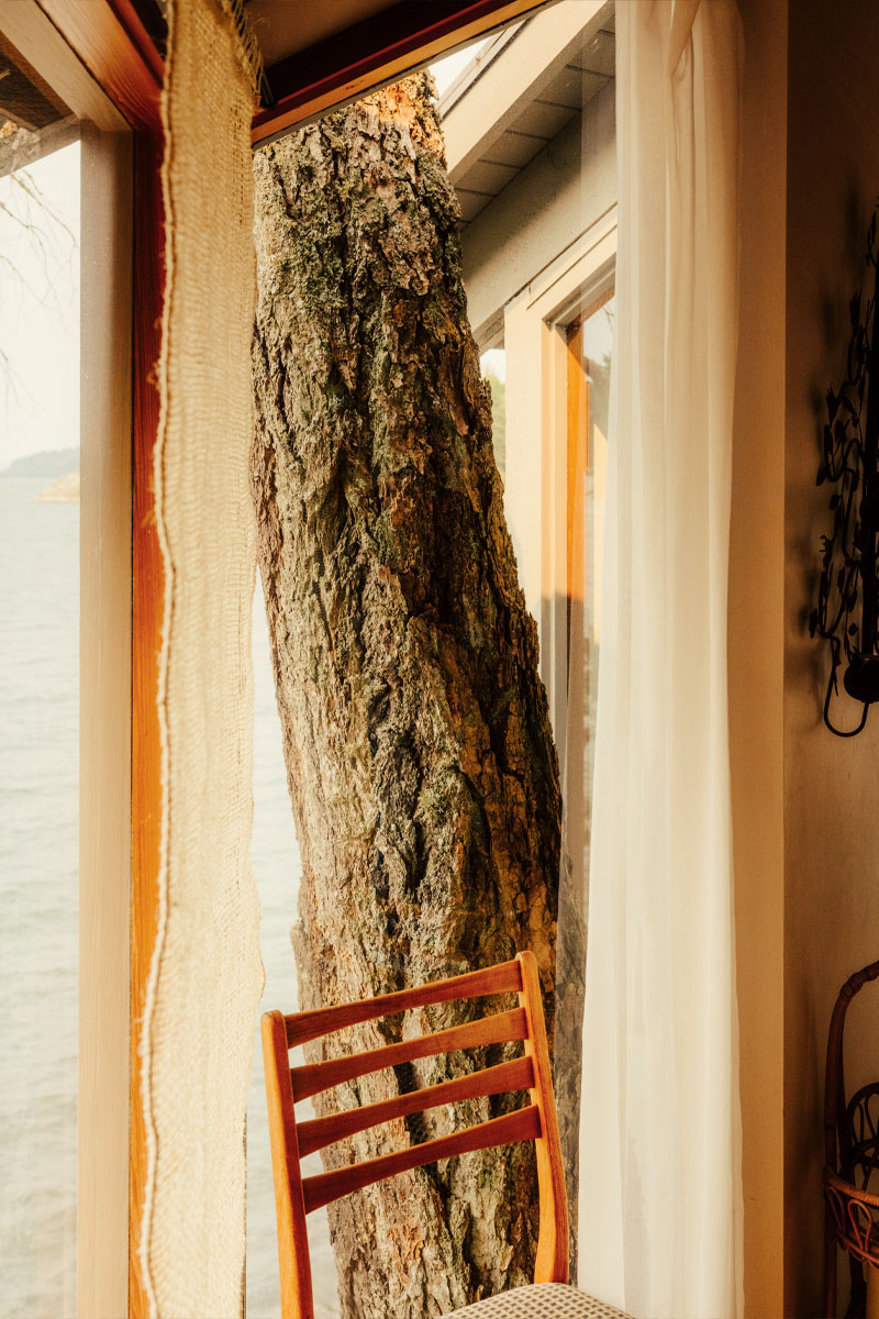 As kids, Chessa and Max had chores to do around the property, such as chopping and piling wood. After, they’d spend full days adventuring around the island. It was a kind of freedom that was rare even then, says Max. “We were probably six or seven years old learning how to run boats,” he says. The pair and their cousins liked to follow a trail known as the “north path” along the coastline until they’d arrive at their granny’s cabin. Chessa sometimes slept there with her grandmother, in the cabin her father designed. She loved to wake up and look out the small bedroom window that reached from the floor to the bottom of the slanted ceiling, about the height of a young kid.