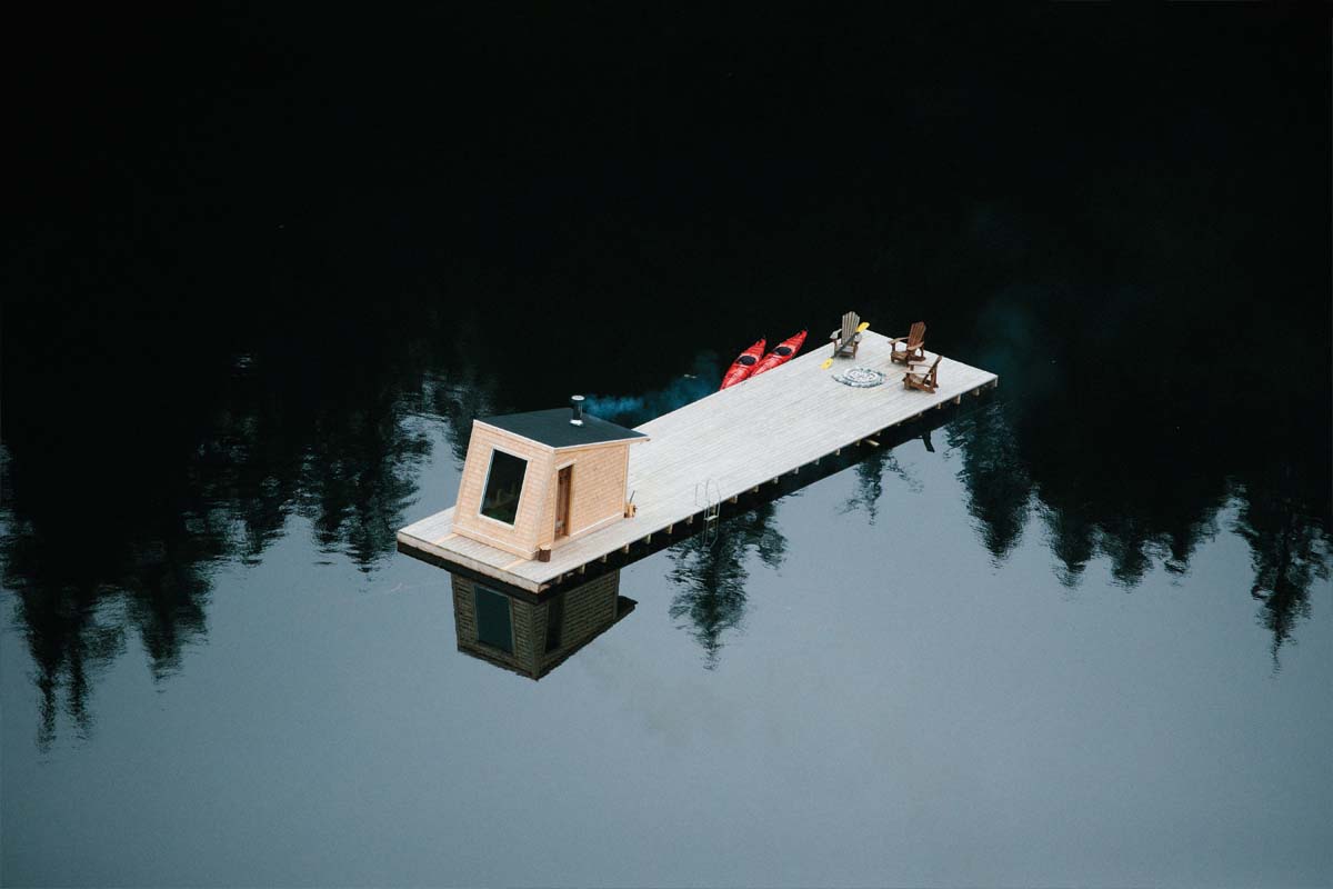 Fraser Murray, the manager of the Nimmo Bay Wilderness Resort, was living in a small, off-grid float house with his family when his parents founded the lodge in 1981. “We had to walk to the waterfall to get water, we only had kerosene lanterns and a woodstove,” he says. Eventually, the float house came down, but Fraser always dreamed of replacing it in some way. He had never heard of a floating sauna, but the concept seemed obvious. “I thought it would be beautiful, going straight from the sauna to the ocean,” he says. A floating sauna could also be towed to a neighbouring bay for guests to use and then back to the lodge for Fraser to use with his family.