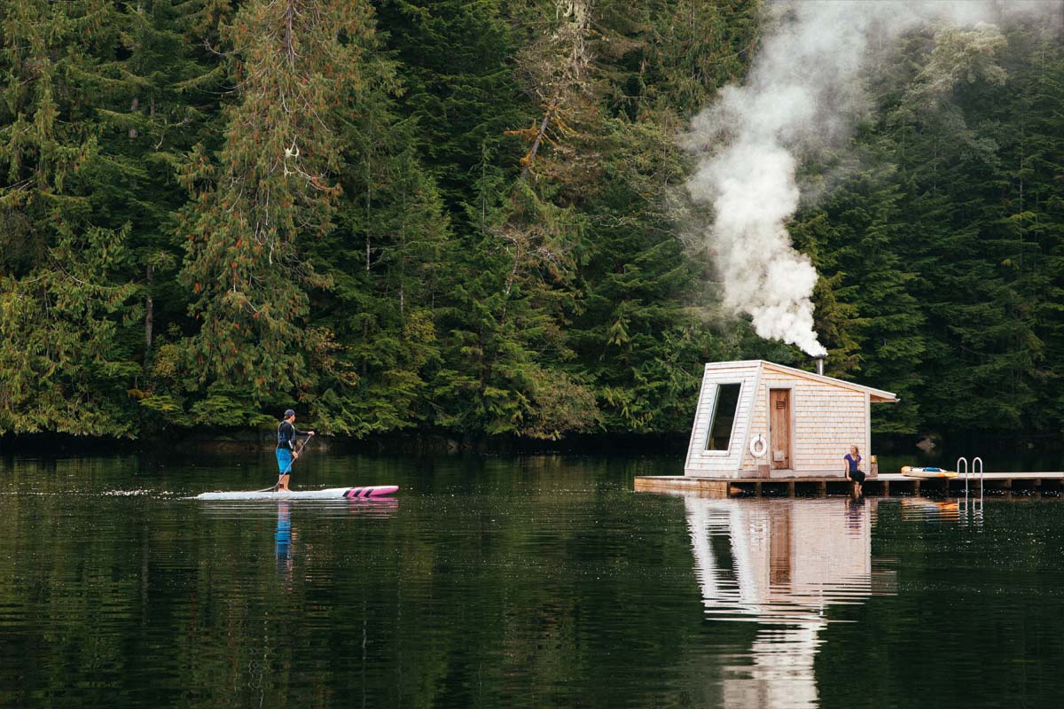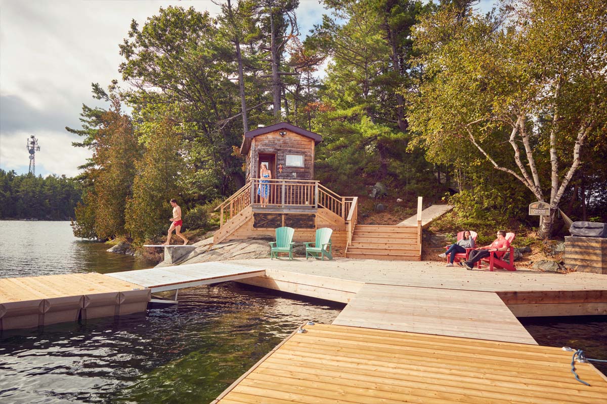 It’s one of those classic shoulder season days—when the fog is clinging to the water, it’s misty, maybe even raining a little bit, and the lake is flat, like glass. It’s the type of day that’s best enjoyed in the warmth of a sauna. Saunas aren’t a new cottage accessory, but they have evolved—ranging from traditional designs to sleeker, modern structures with big windows—yes, windows!—to showcase the view, whatever the weather.
