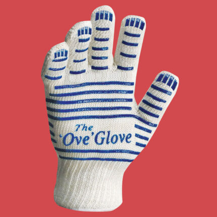 Cheesy name, well-designed glove. Kevlar and Nomex in The “Ove” Glove’s knit protect from heat, silicone strips add grip without stiffness, and variegated yellow colouring disguises stains a little—all in a glove that leaves your fingers mobile and dextrous.