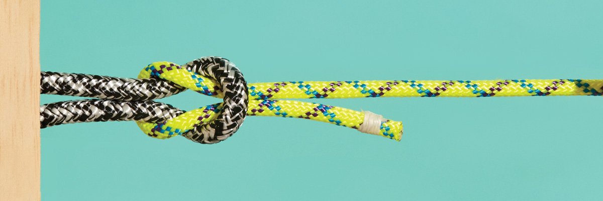 Keep synthetic rope clean and free of knots, both of which can damage its fibres and significantly reduce it’s working load. If you get a knot, work it out before it becomes too tight. Dirt can also break a rope down; put it in a bucket of warm, soapy water once a year, then rinse and air dry. Don’t store wet; mildew makes it vile to touch and smell. Always coil and hang rope when not in use.