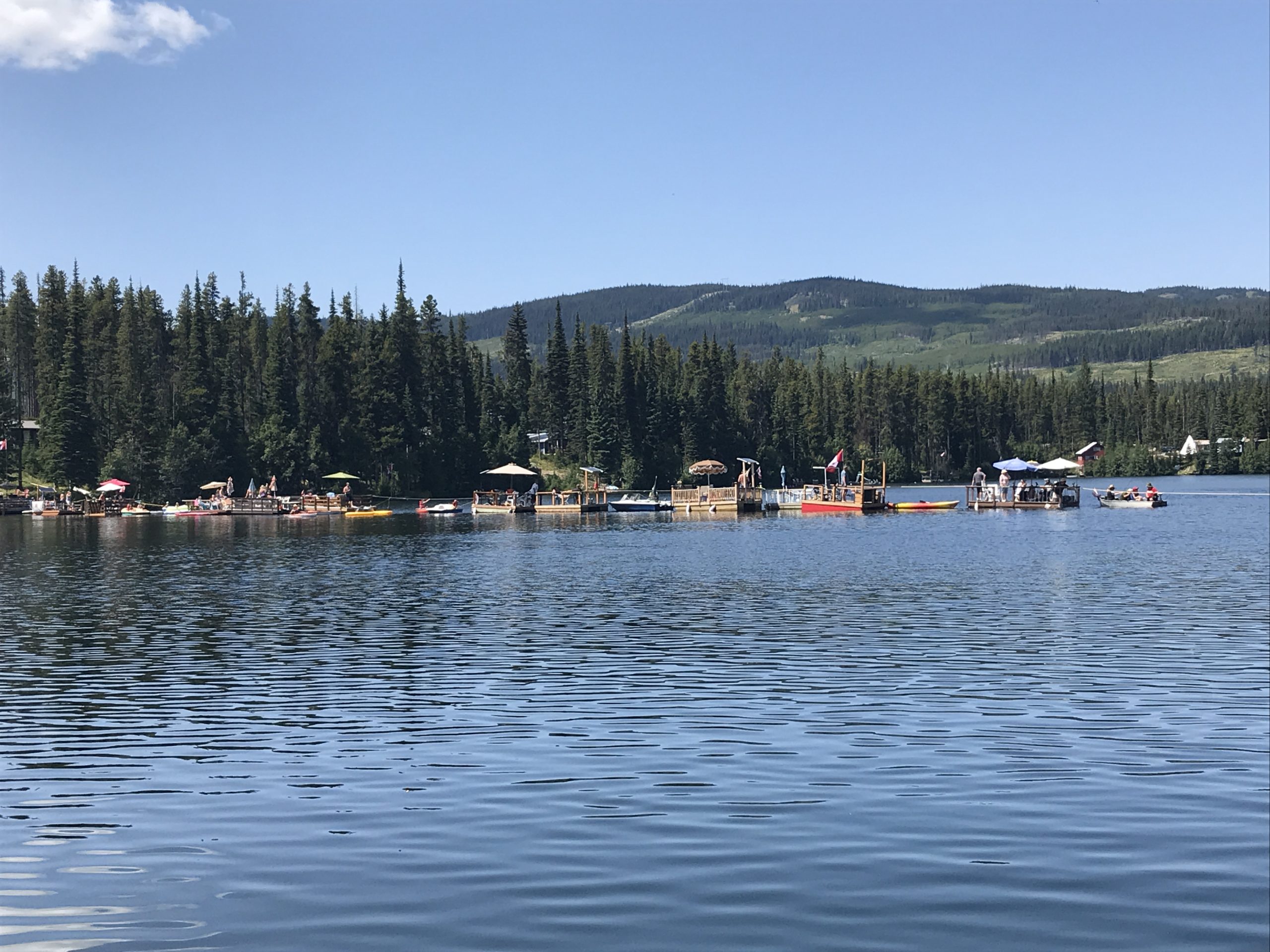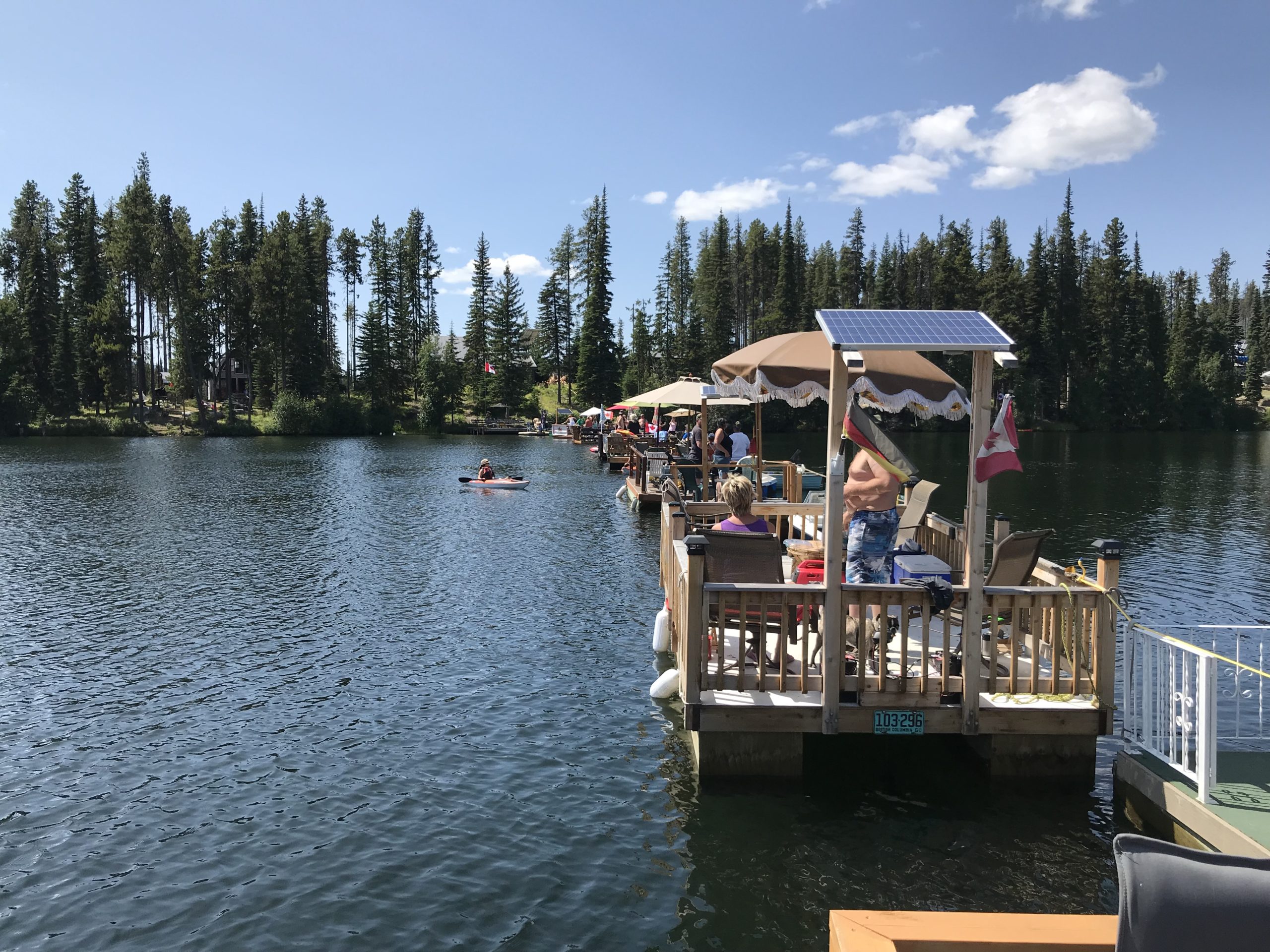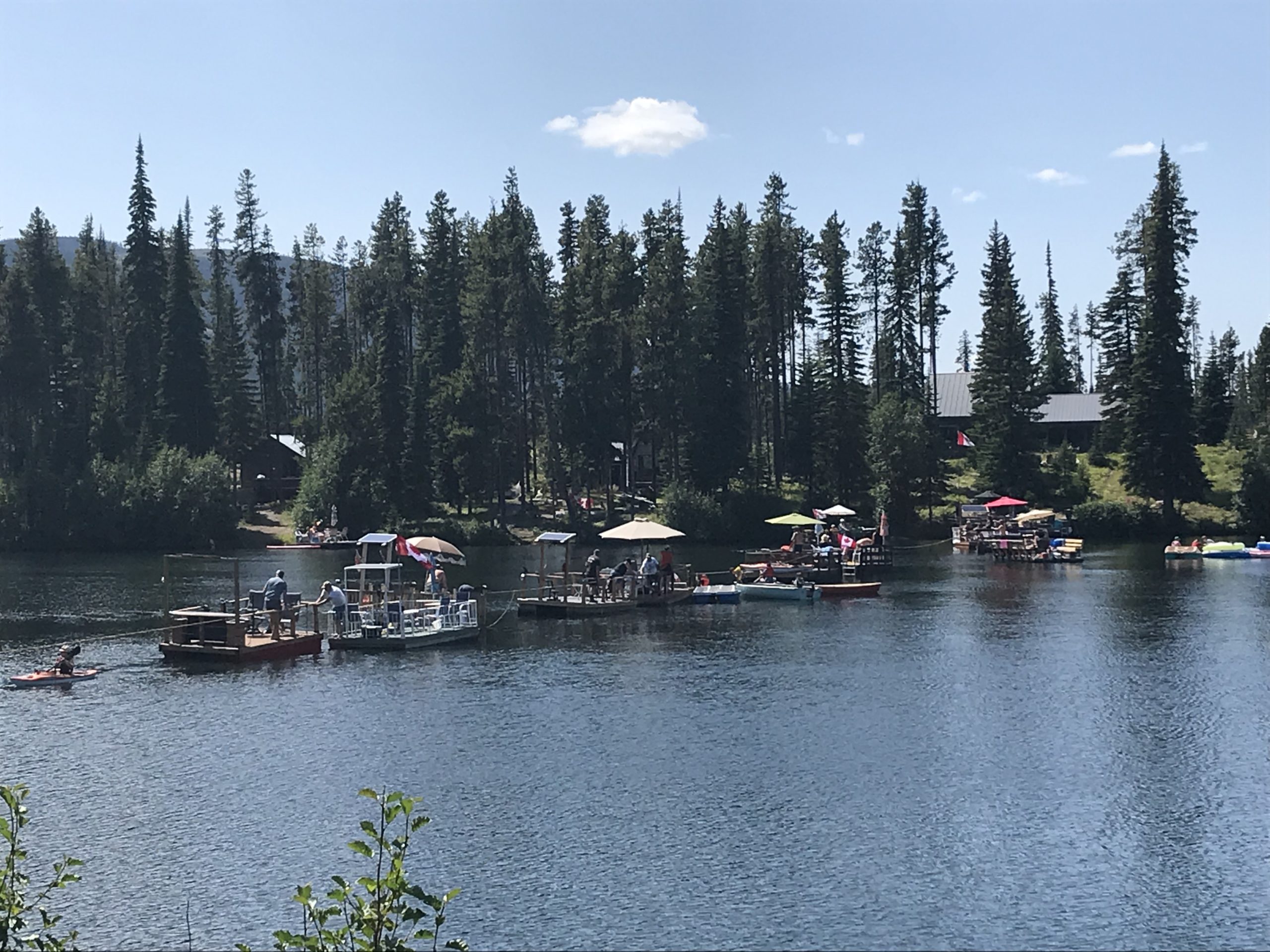 There’s always been a genial rivalry between cabin owners on either side of Headwater Lake, B.C., says Pat Bil, who’s owned a cabin there for the last five years. Those on the “lighter side” of the lake are lucky enough to get the afternoon sun; consequently, cottagers on the “dark side” of the lake would boat over (usually on homemade pontoon-like “barges”) to take advantage of the rays on the longest days of summer. The Lighter Side cottagers—including Pat and her husband, Bill Heinrich—often jokingly chided the Dark Siders for motoring over on their floating patios.