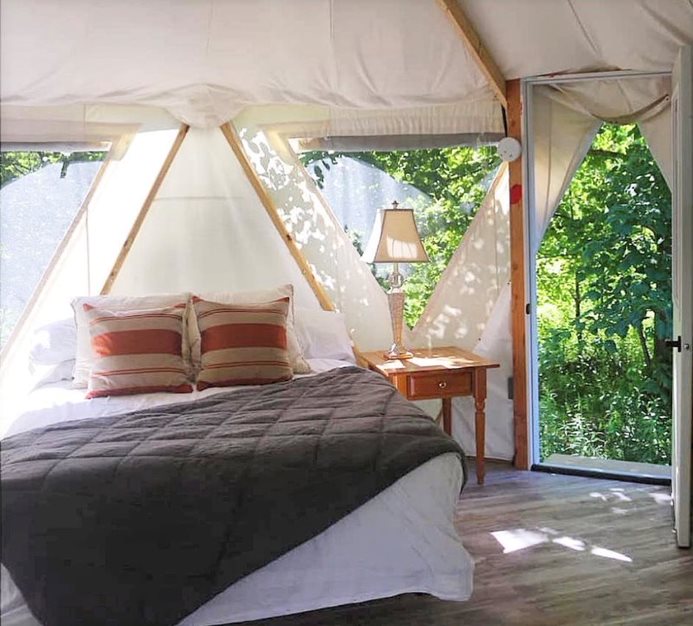 Get a little taste of farm life mixed with glamping in one of their tree luxury tents surrounded by trees. Delicious breakfasts along with playtime with pygmy goats will be part of your stay. Various workshops are also available, including gardening or homesteading. Note: don’t be surprised if you open your tent at some point during the day and see an alpaca grazing out front.