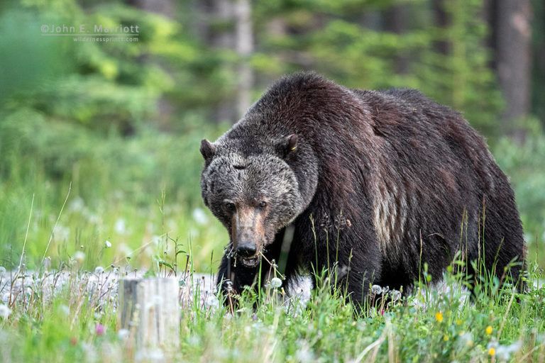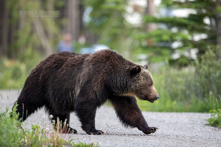 An encounter between two male grizzly bears in Banff Provincial Park brought new meaning to Shakespeare’s famous stage direction: ‘Exit, pursued by bear.’ Canmore wildlife photographer John E. Marriott was camping with his family at Protection Mountain Campground in Banff National Park on July 3, 2020, when two dominant grizzly bears showed up at the campsite at the same time, setting off a chase that Marriott was able to capture on film and video.