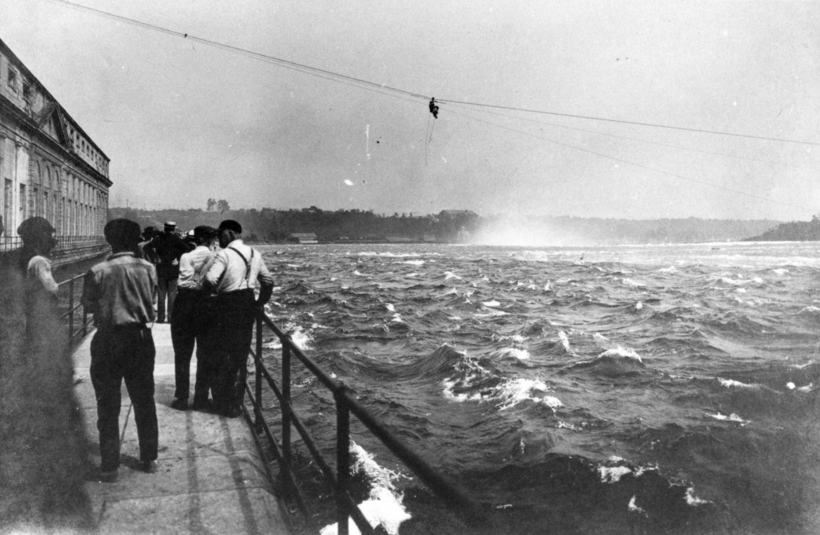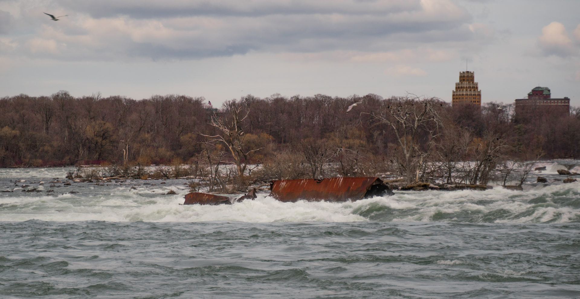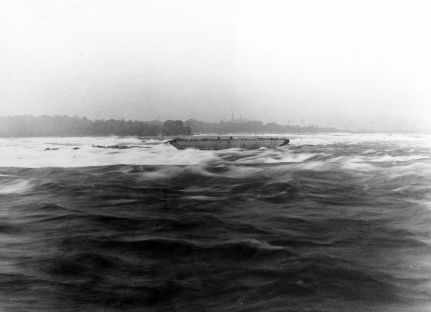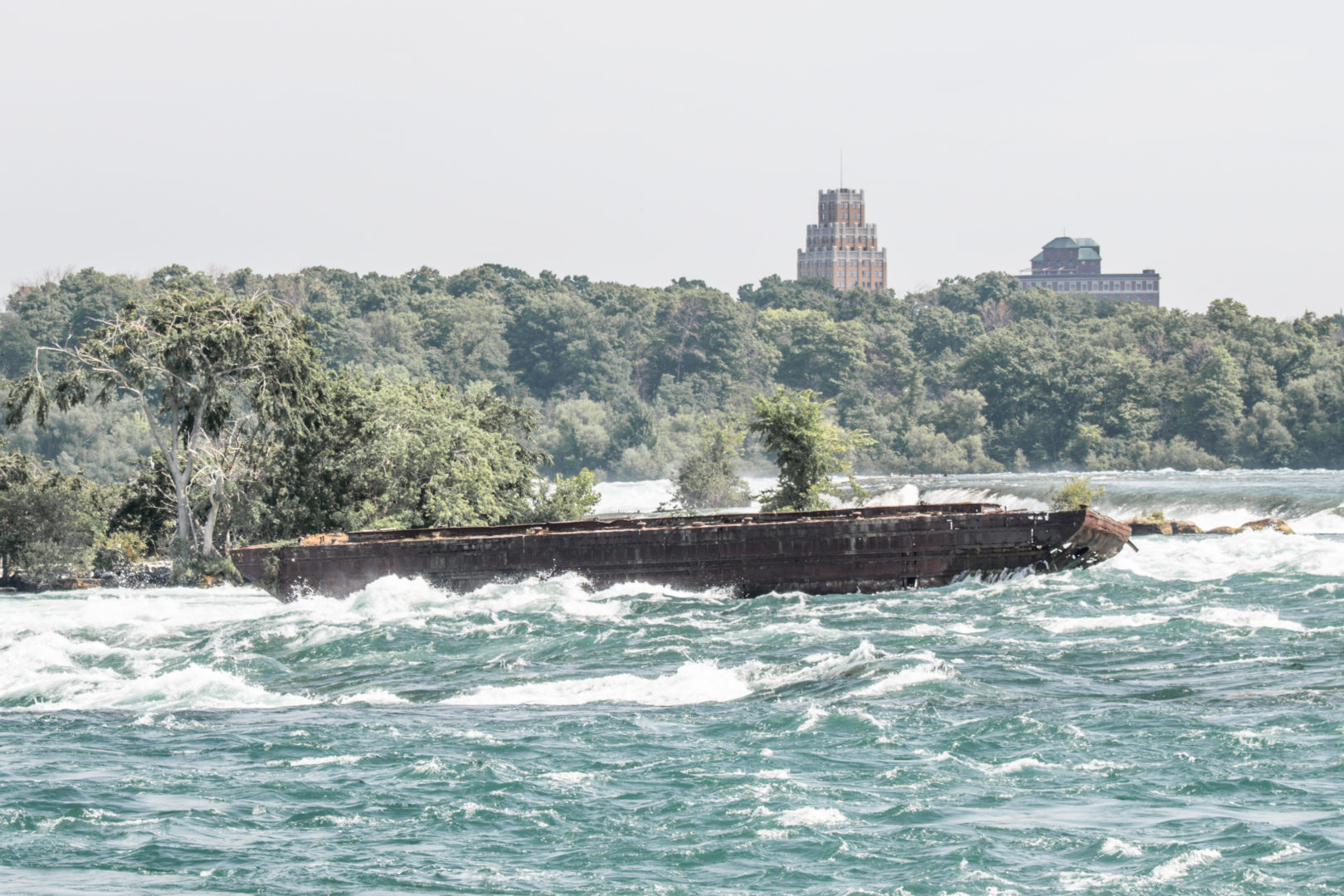 The scow has remained stuck in the shallow, fast-moving water since 1918, when it broke loose from its towing tug, stranding two men onboard. A heroic rescue ensued and the scow has been there ever since, save for its recent shifts. The 100th anniversary of the rescue was celebrated by Niagara Parks on August 6, 2018, and William “Red” Hill Sr. was recognized for rescuing the two men on board.