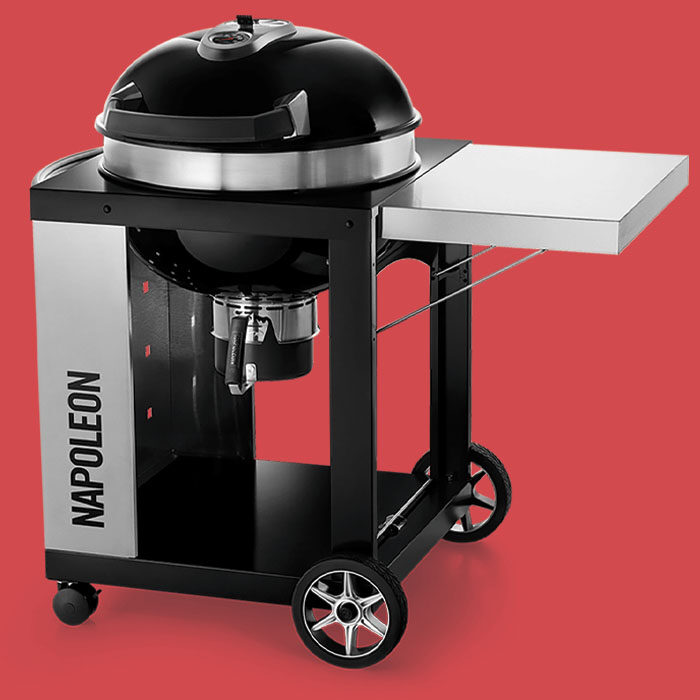 charcoal grills Napoleon 22-Inch PRO Charcoal Kettle BBQ Grill With Cart and Folding Prep Shelf, Hinged Cooking Grids