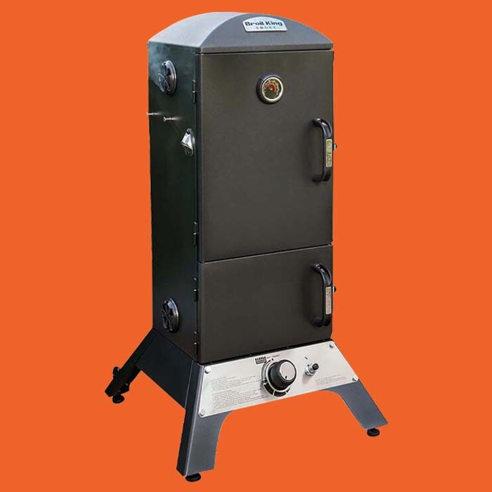 Gas smokers: usually housed in a rectangular cabinet, the units share the vertical arrangement of a charcoal smoker, with the fire pan replaced by a propane burner. A pan for wood-smoking chips sits above the burner and does double duty as a heat shield to keep the flames off the food on the horizontal racks above. Some models have water pans while others do not. Most have some sort of catchment for drippings. With no charcoal to light and maintain, these smokers are simple to run but not fully autonomous: to keep making smoke, you’ll need to add wood chips throughout the cooking process.