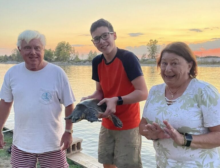 Immediately, she knew this was no local turtle. “It had flippers and a very cute nose and eyes,” says Leigh. It also had a unique skin-covered shell, as opposed to the hard exterior shells most Ontario species possess. After confirming with a local reptile zoo volunteer, the turtle was identified as a fly river turtle, also known as a pig-nosed turtle, named for its adorable snout.