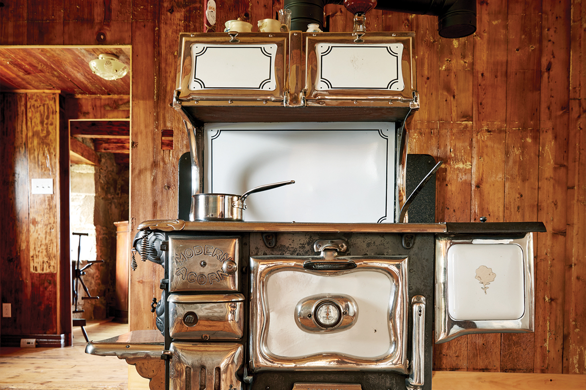 The considerations weren’t simply cosmetic, and the job might have daunted someone without a connection to the property. There was a crack in the back stone wall large enough to put your hand through, and that wall bulged out, its structure—and the building’s, as a result—compromised. The wiring needed to be replaced. The roof needed redoing. Almost all the windows needed replacing. A new septic system and well were required. The heat sources—an oil heater in the parlour and a wood-coal stove in the kitchen—had to go. How much did it cost? “Let’s just say it’ll be an extra 10 years before I retire,” says Lorrie with a laugh.