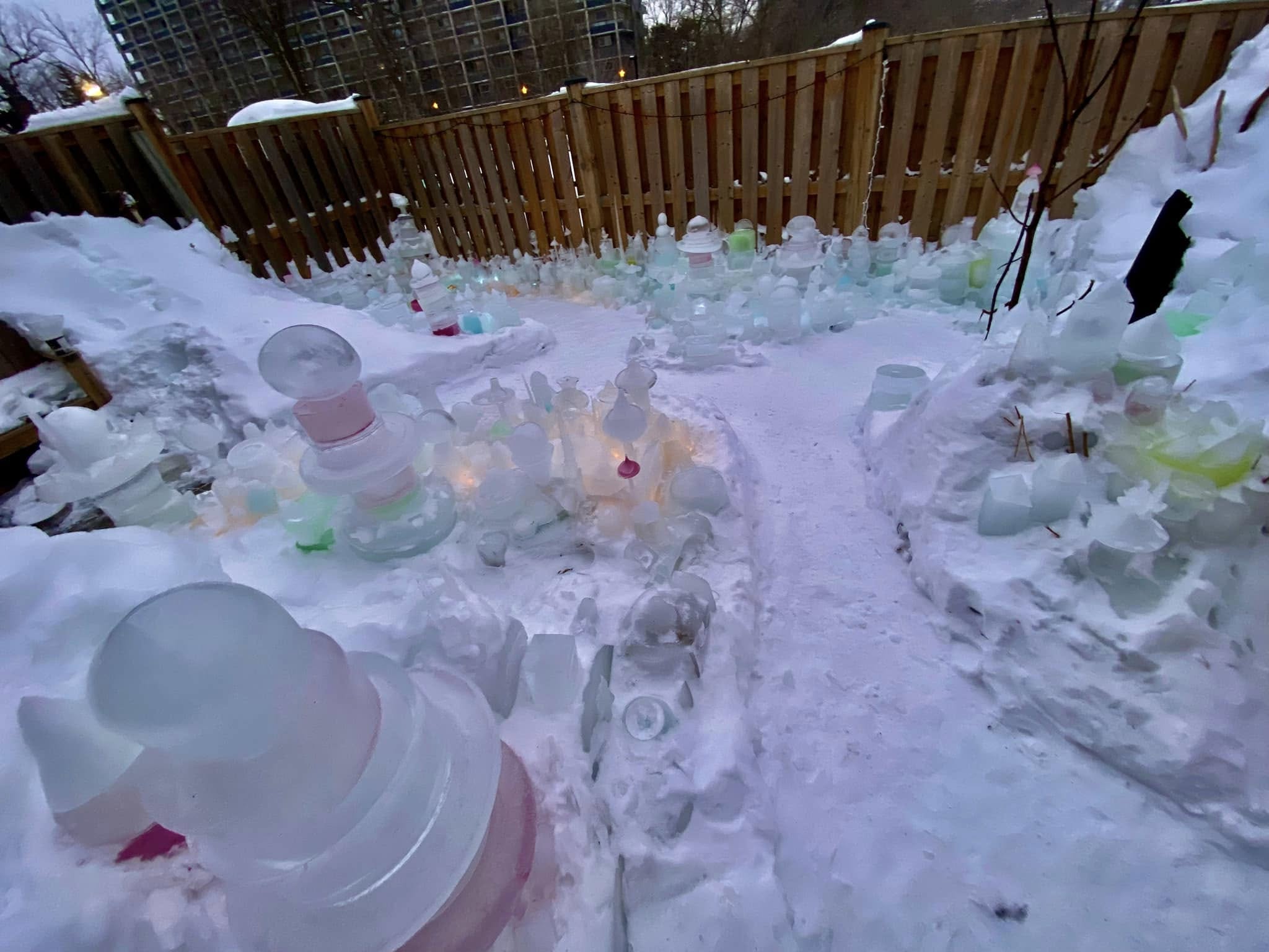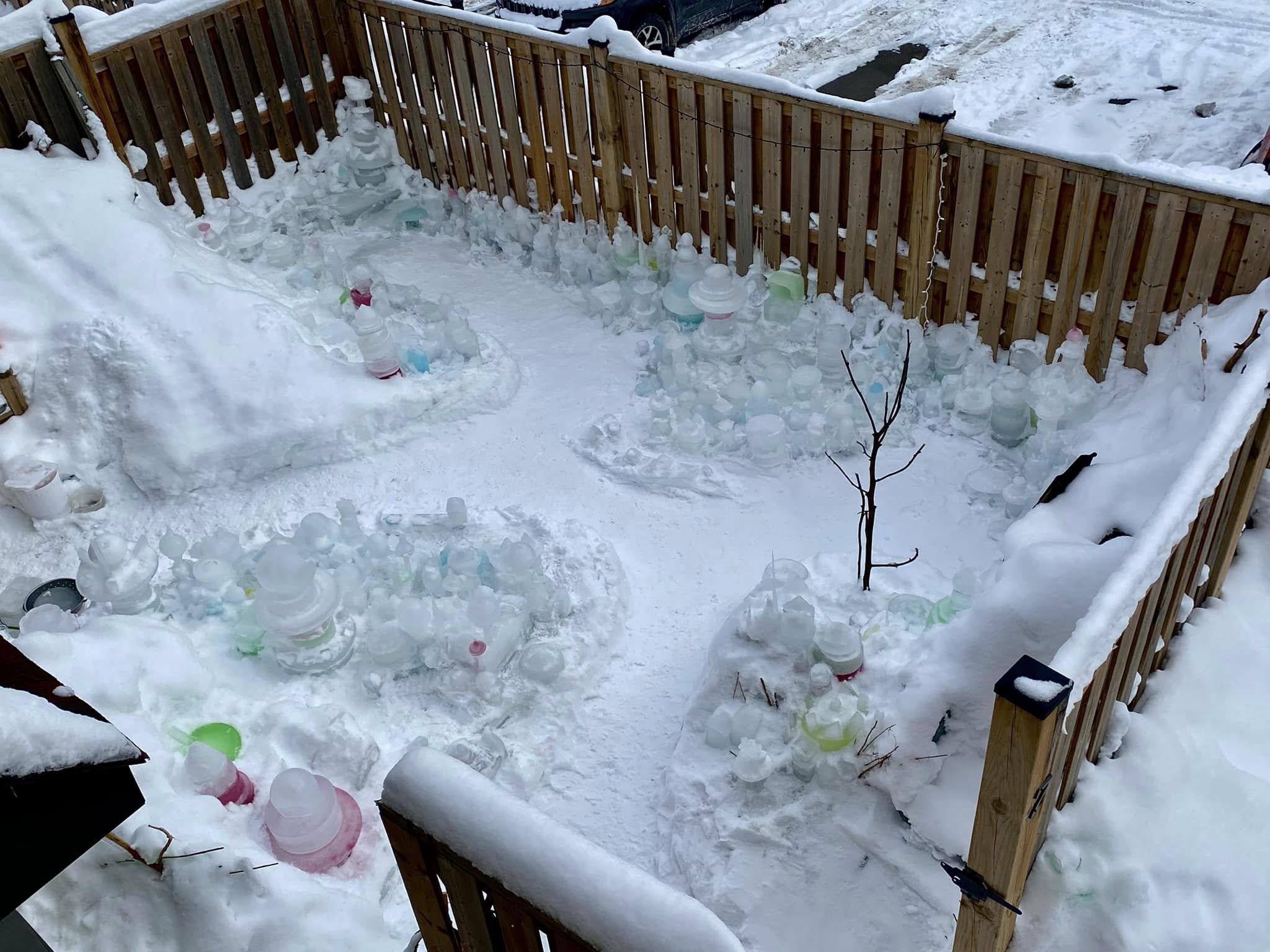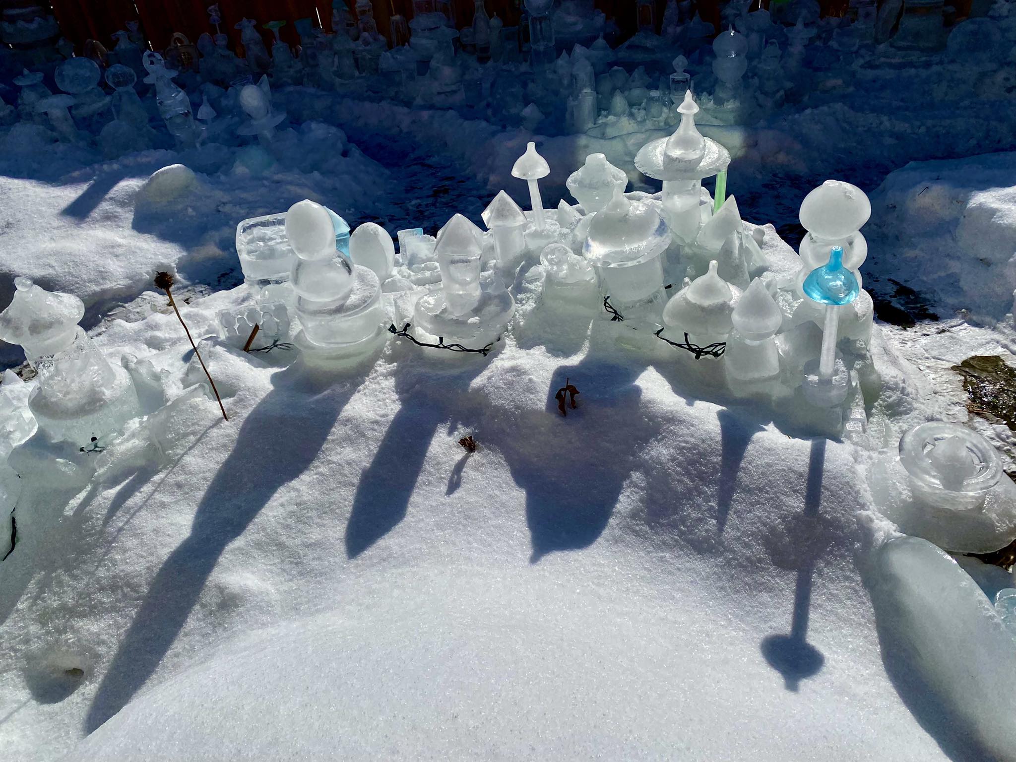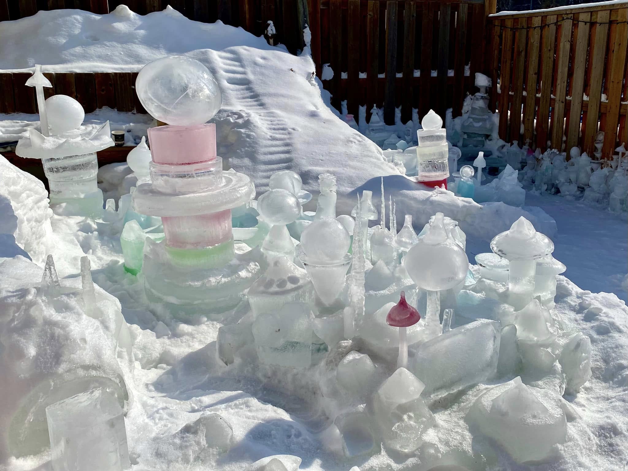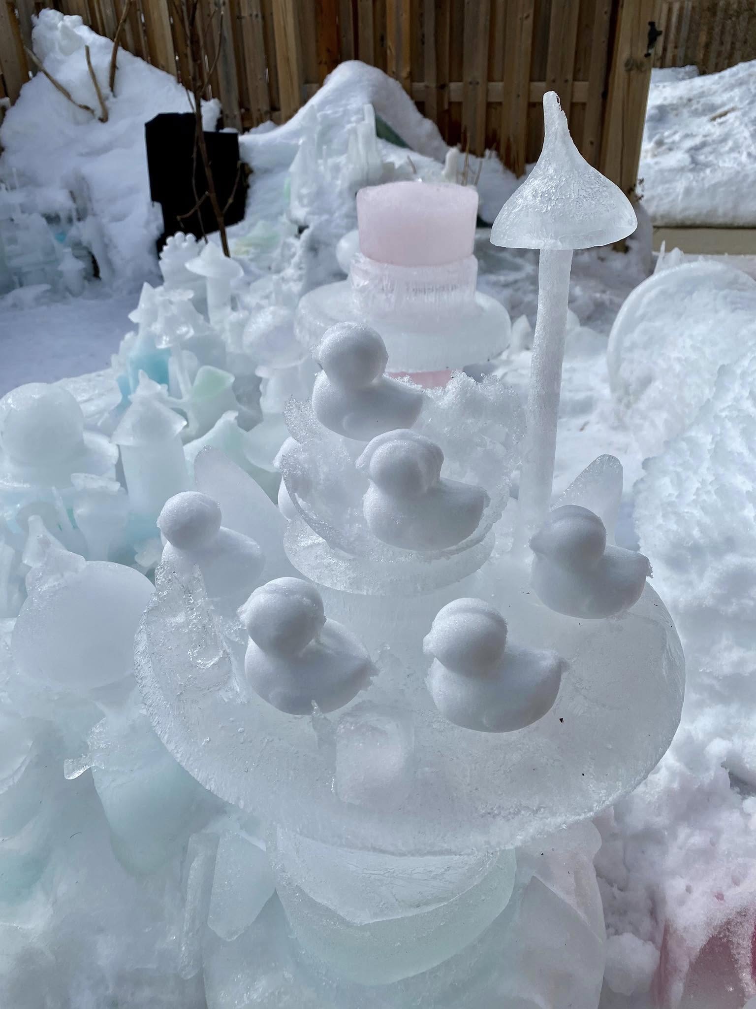 “Iceopolis is about artistic expression, exercise, fresh air, staying close to my garden in the offseason, and it’s medicine for my mental health,” says Robert. “If I start to feel the winter blues, I put my coat and boots on and I go outside and play with ice. Some days, I spend hours out there. I hope to inspire others to do the same.”