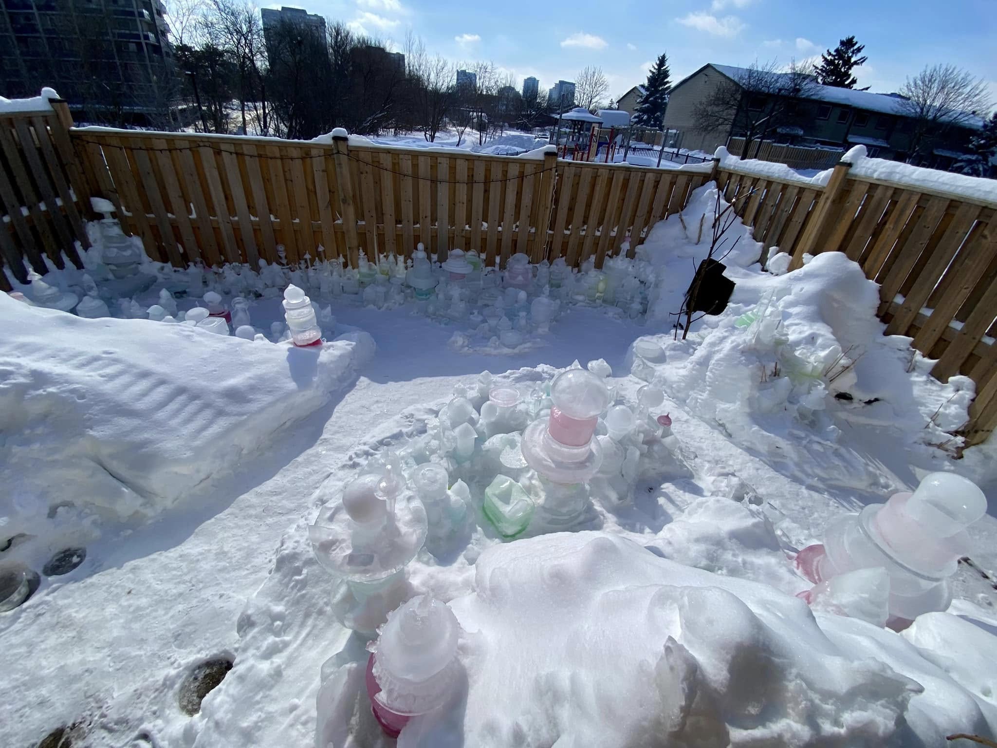 The reaction from not only the Waterloo community but from all over Ontario has been tremendous, says Robert, who has done a flurry of interviews for various media outlets. He is happy to showcase his icy artwork to visitors and often does for friends, family, and neighbours. He even welcomes strangers to visit his humble abode to take a tour.