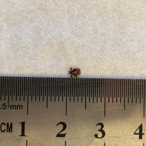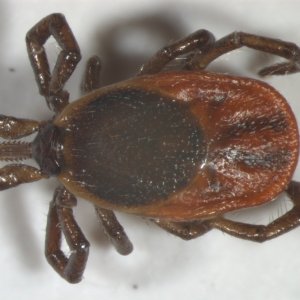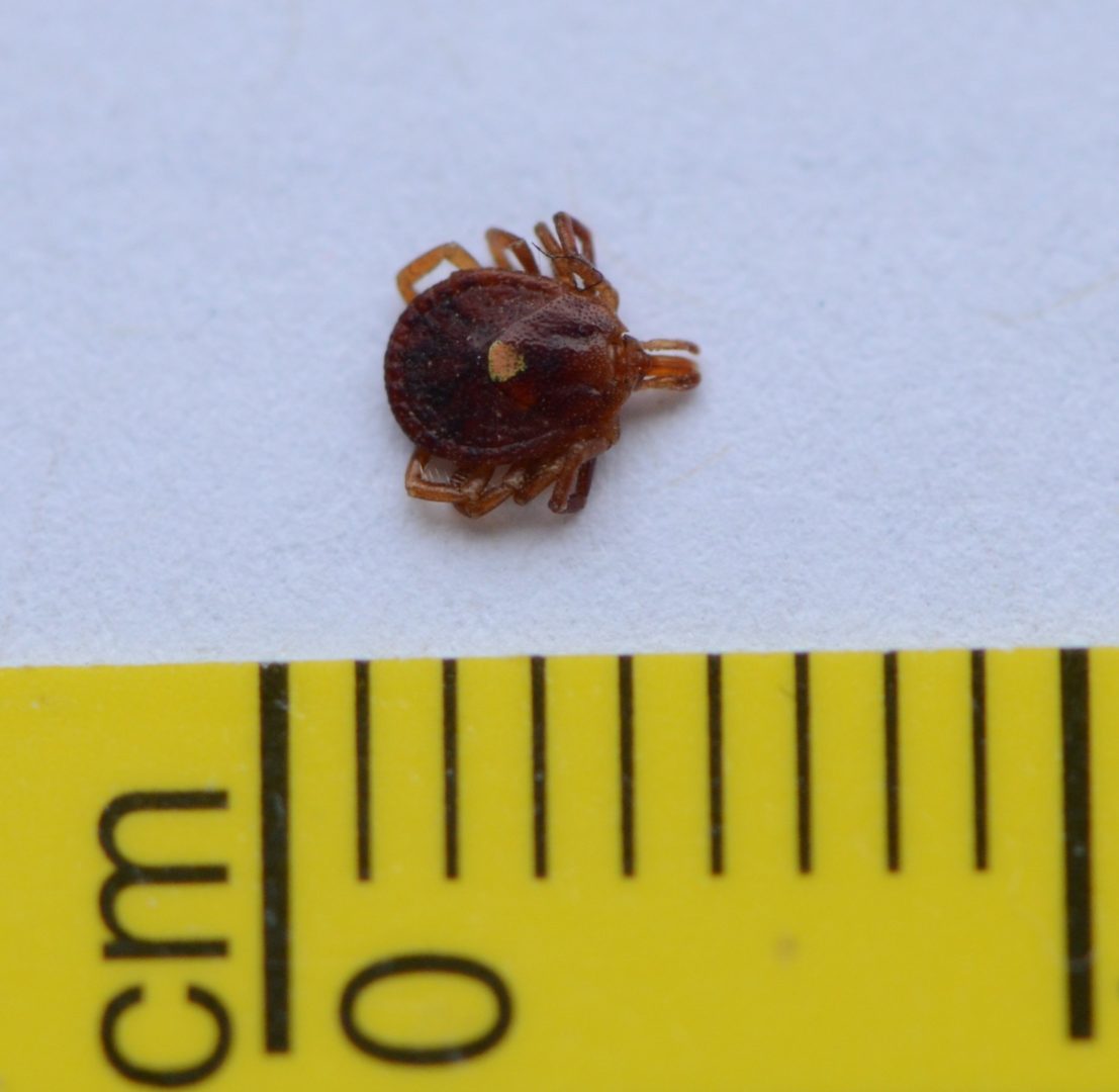 I. scapularis female, not engorged, found in Forêt, Saint-Hippolyte, QC