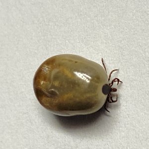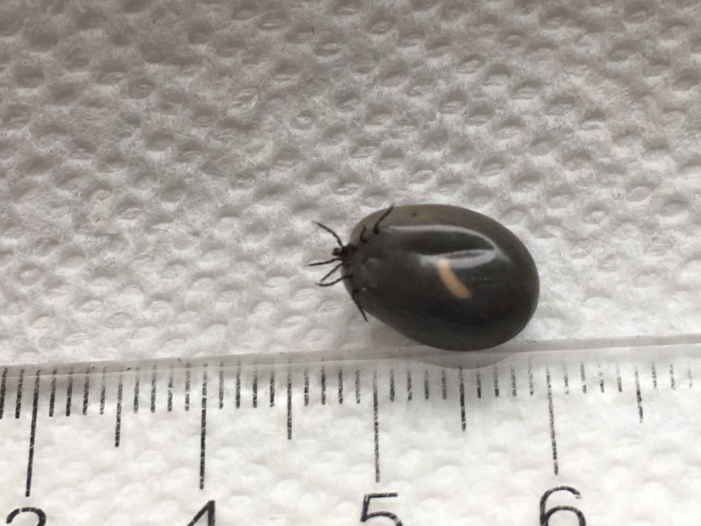 Engorged I. scapularis female, found in Saint-Samuel, QC.