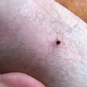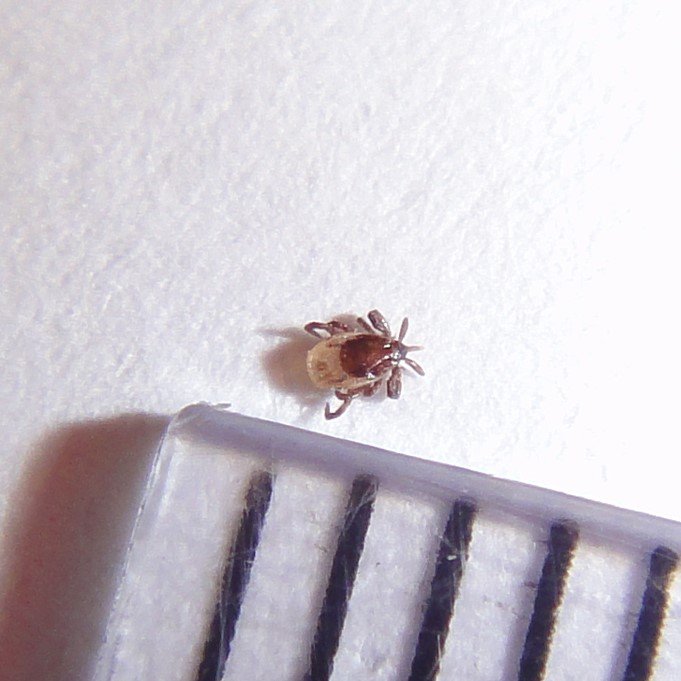 Blacklegged tick nymph found in Sherebrooke, QC. These are often the most most dangerous medically speaking simply because they are much easier to miss during tick checks due to their smaller size.
