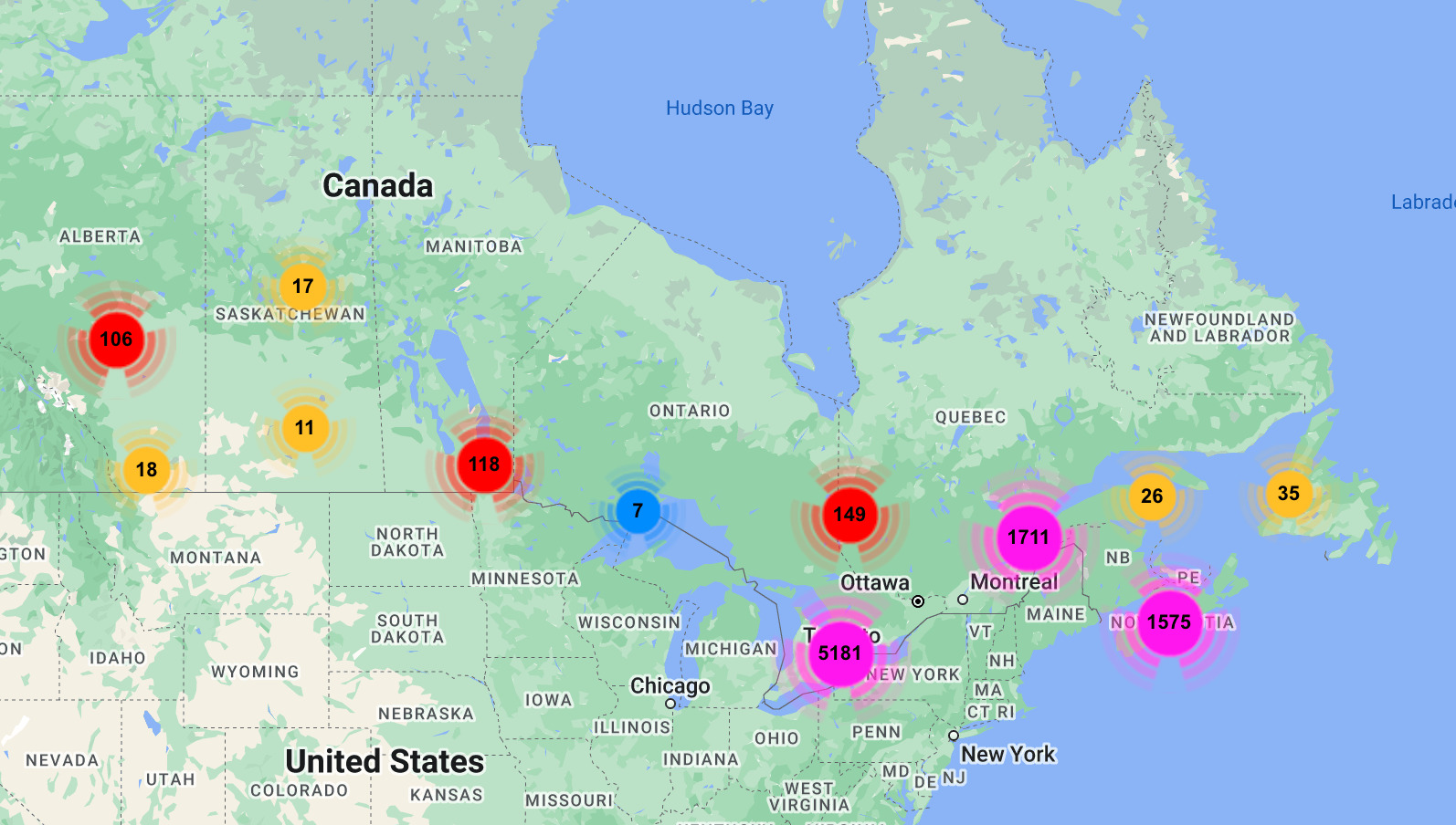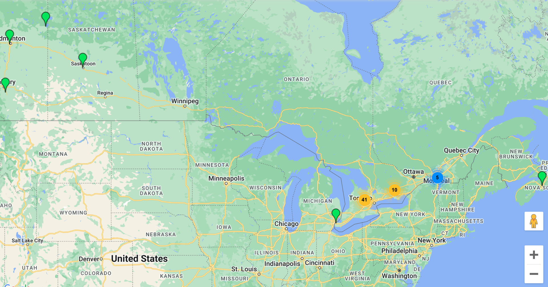 Note that the eTick map shows locations in Canada where ticks have been observed and submitted to the eTick platform. This is not a risk map for tick-borne illnesses but rather a map that displays where ticks have been observed by Canadians. The data points are aggregated but zooming in to specific areas will allow you to see where specifically ticks were found. You can also click on individual points to see the submission information such as the tick species and when it was observed. Note that a maximum of 20000 points can be loaded at once and we suggest using date, province and/or species filters to maximize the number of points loaded in an area of interest.