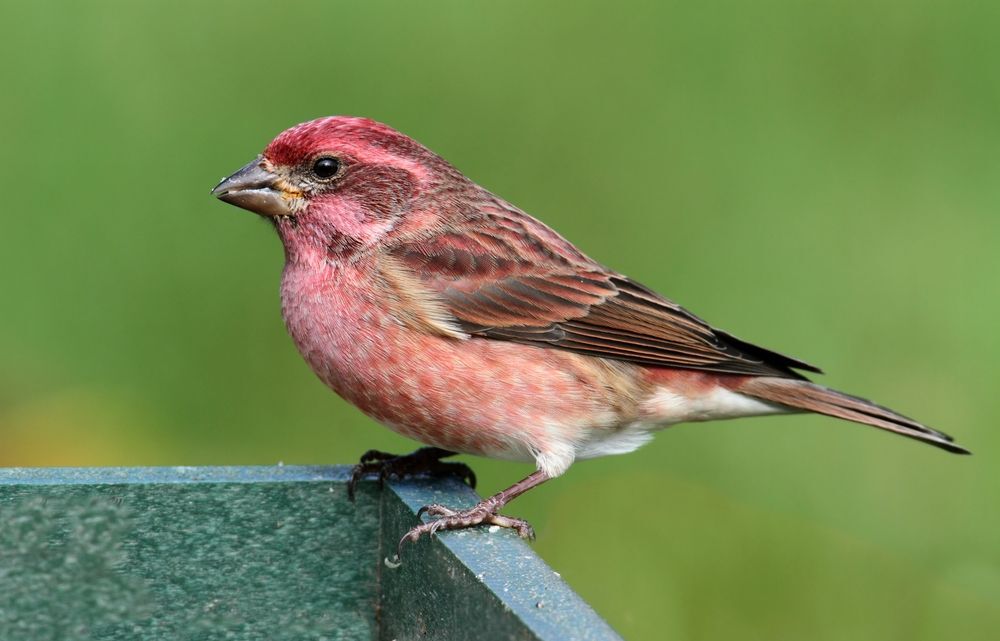 Only adult males are purple (ish). Henry David Thoreau described this fellow as having “the crimson hues of the October evenings.” Purple finches also know how to bust a move; they “dance” to attract females. A male will fluff out his feathers and hop around a potential mate.