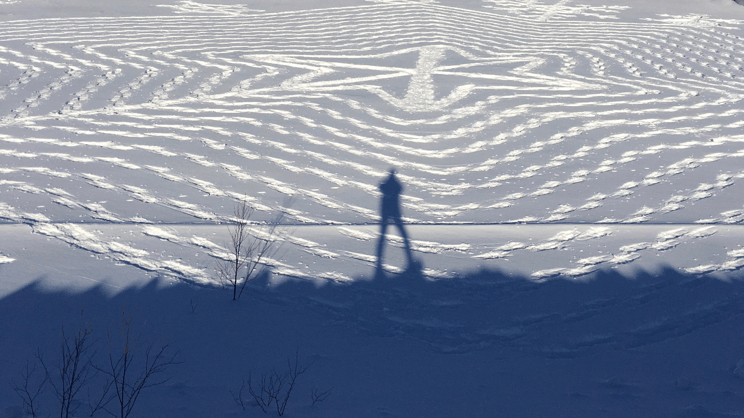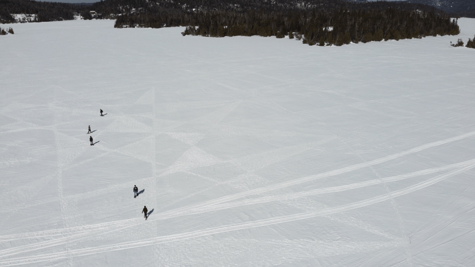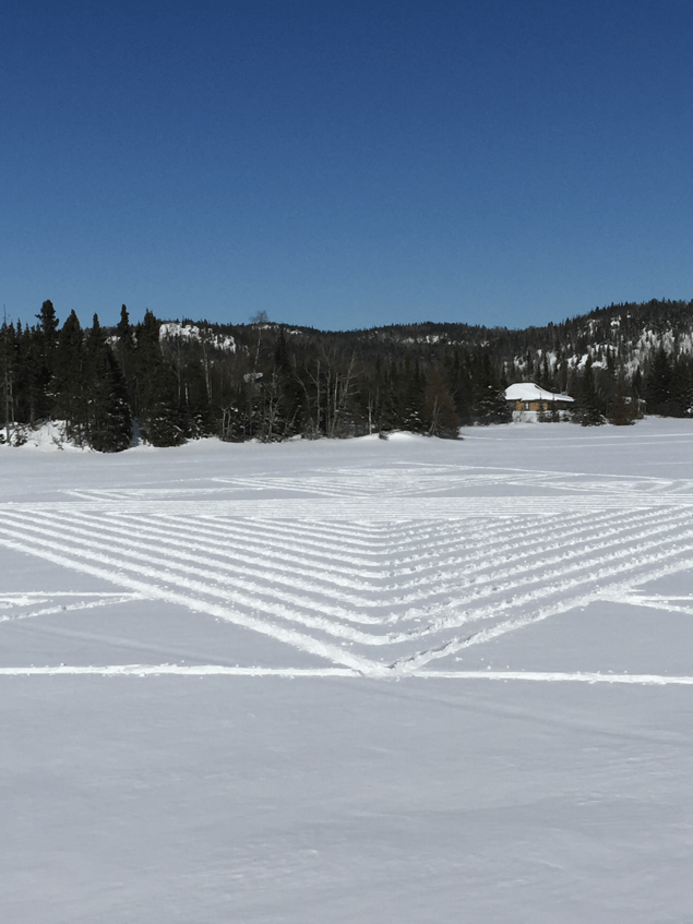 You’ll also want to choose a spot on the lake where the snow is likely to remain undisturbed. Sunny weather, he says, is the best time to make the designs because the lines are easier to see.