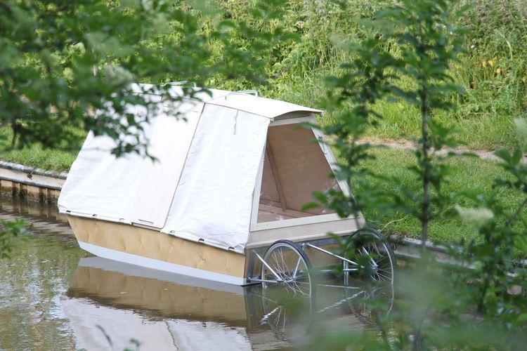 In the case of the WaterBed, form follows multi-function. Crafted by London, England-based designer Daniel Durnin, WaterBed is a leisure boat/ trailer that can be easily towed by a bike. The urban waterways of London inspired Durnin, who wanted to create a nomadic, floating vessel that allowed users to explore the city’s nature in a new, relaxing way. The compact boat is equipped several windows for sightseeing and outfitted with a bed and a small flip-down table. Once you’re done meandering across a quiet canal, pond or river, pull the WaterBed back onto land for impromptu camping.