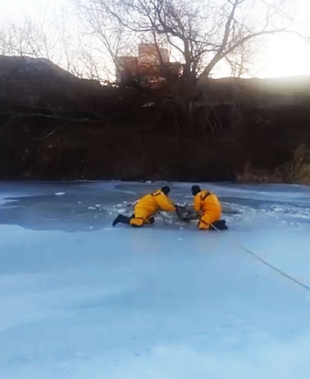 Proving that it’s not just people in burning buildings that need rescuing, firefighters in Swift Current, Saskatchewan came to the rescue when a young deer fell through thin ice on a local creek. Using ropes, the firefighters were able to pull the deer to safety, then wrapped her in blankets and spare clothes to help her warm up. After 45 minutes, she was back to normal and ran off.
