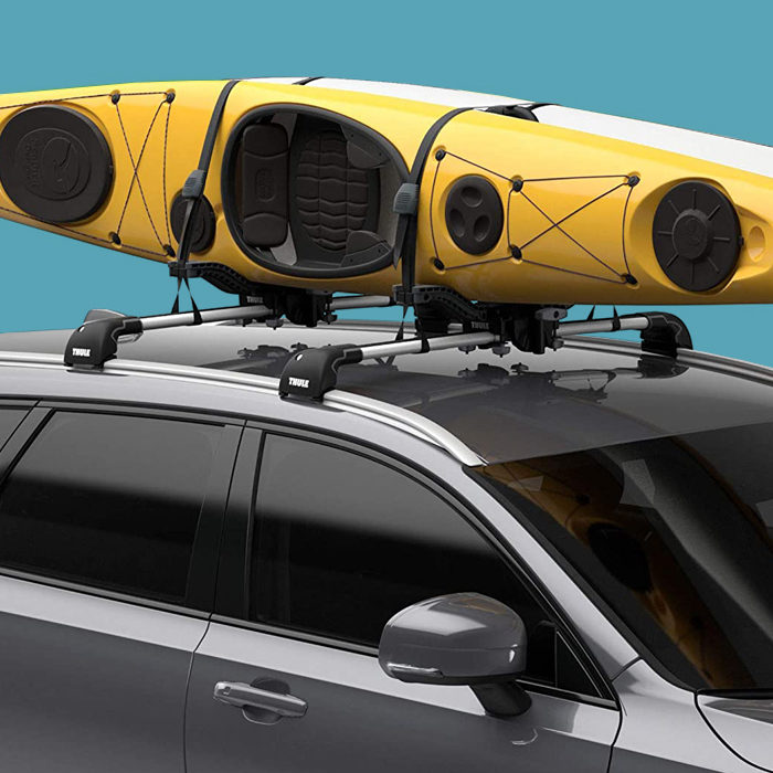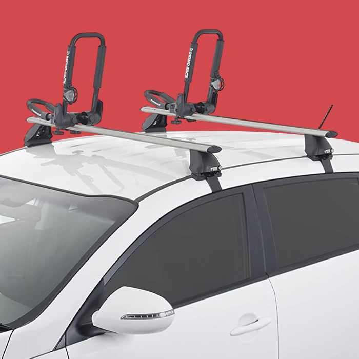 Another versatile watersport carrier, the Rhino-Rack Folding J-Style Carrier can fit multiple kayaks or canoes. It uses the J-Style system, meaning your kayak or canoe is stored on its edge. Thanks to this system, there’s room on the roof to fit more than one watercraft. If you use extended cross bars, Rhino-Rack says it’s possible to carry as many as four kayaks or four canoes at one time.