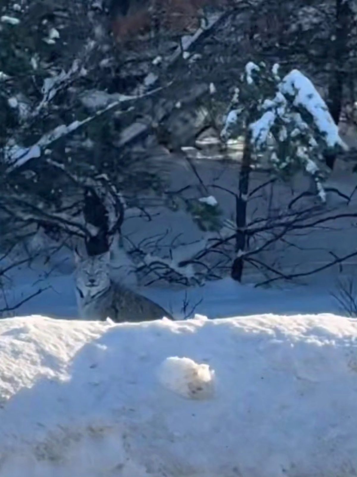 Stubbington was headed south when he came across the animals, and paused his trip to capture a video. The clip shows four lynx, and Stubbington can be heard noting a fifth off camera.