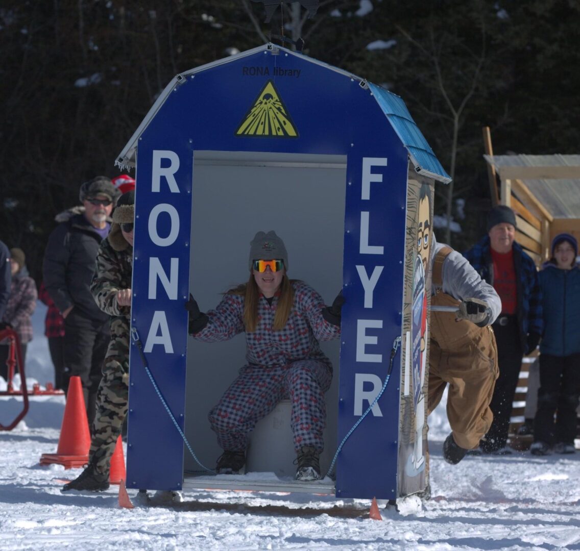 Variations of the event have been happening for decades but the races were officially revived by the Fishing Highway Tourist Association (FHTA) in 2014. “We came up with bringing back the outhouse race as a fun activity during the long winters when there’s not much to do,” says Irene Meili, President of the FHTA and outhouse race coordinator.