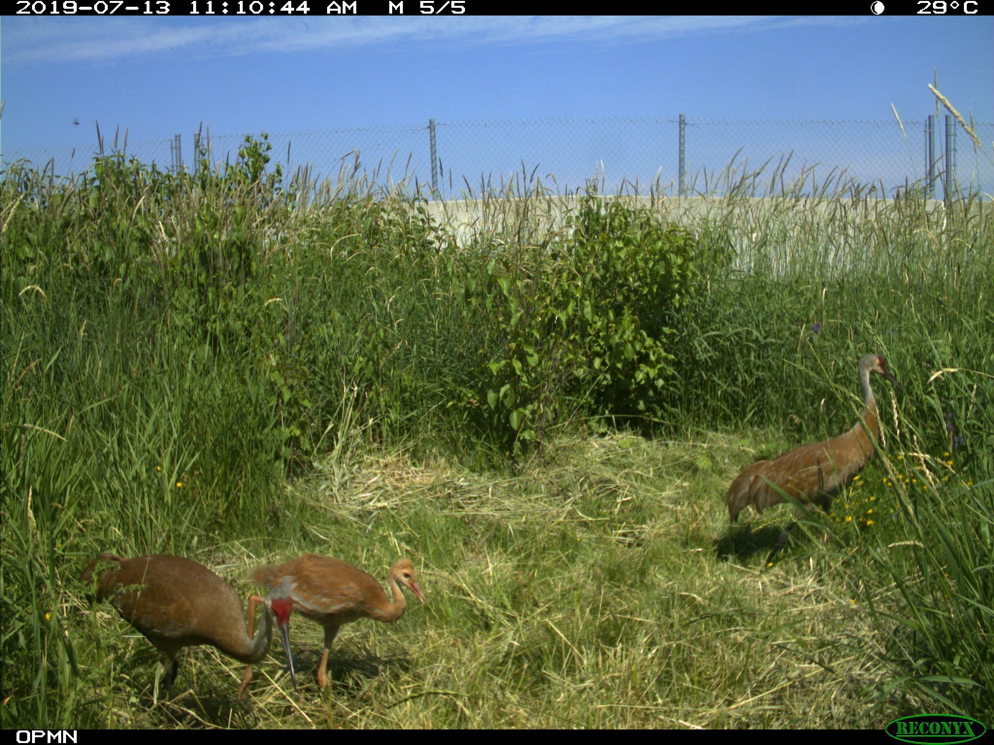 A highlight caught on camera was a sandhill crane family crossing the Burwash overpass. Large mammals are easier to pick up on monitoring cameras, says Gunson, so a family of birds was an interesting surprise. Gunson describes a mother and father with chicks, “walking peacefully,” across the overpass and feeding. “It’s quite interesting to have a diversity of animals,” she says.