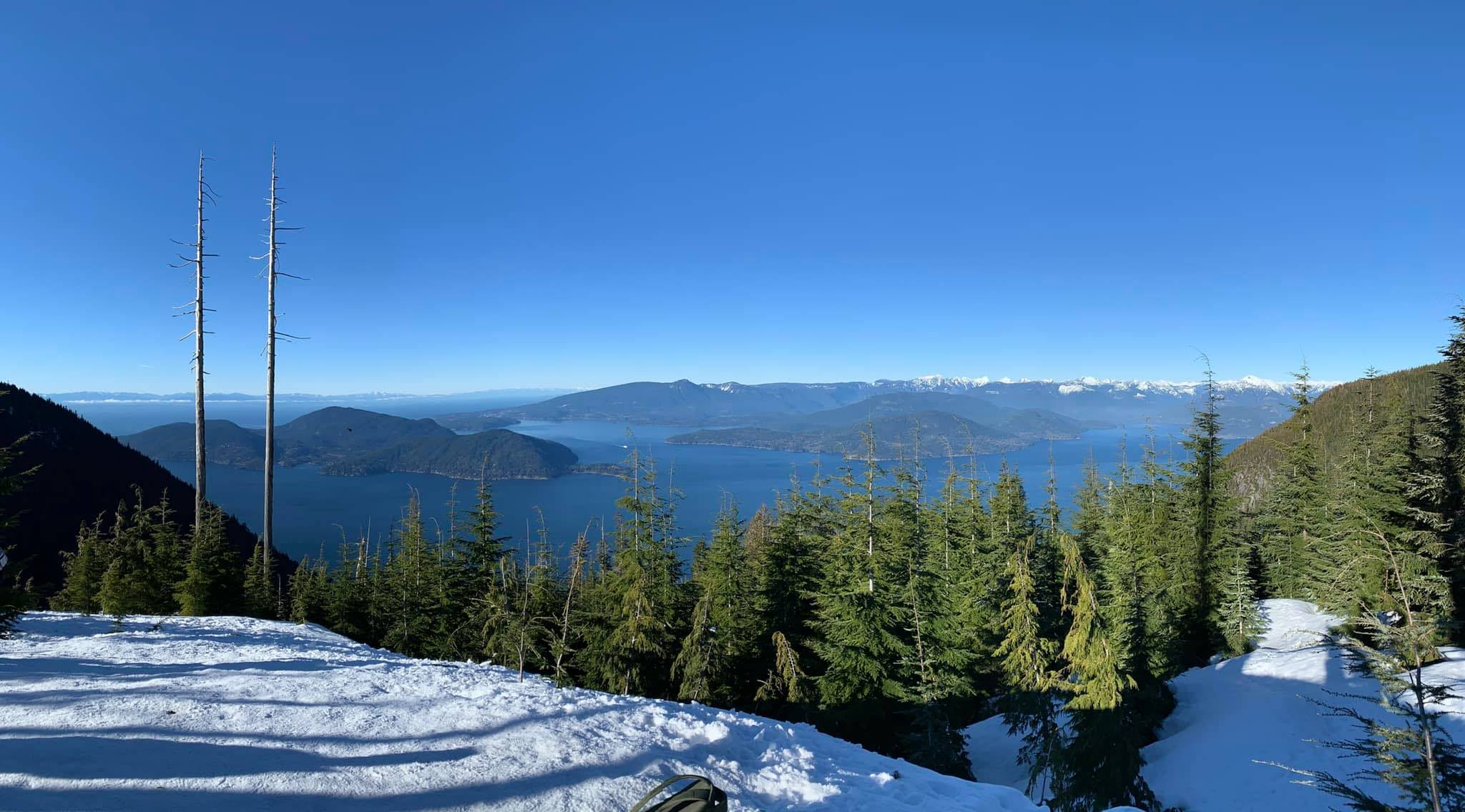 Located along the famous Sea-to-Sky Highway, Tunnel Bluffs gives another excellent vantage point of the Howe Sound below. The beginning of the hike is a steep climb but levels out to an old logging road that brings you to the viewpoint. It begins at the Brunswick Trail, so you can also tack that hike on if you’re looking for a longer day. While this is also a hike and an area that doesn’t usually have a ton of snow, weather on and around the Sea-to-Sky Highway can change quickly, so arrive prepared.