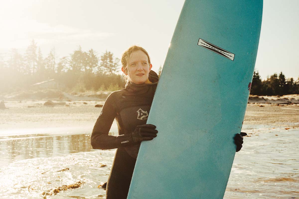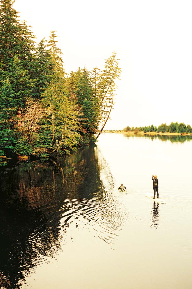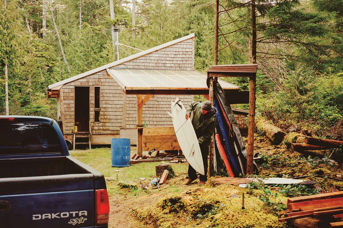 Although there can be surf in any month of the year, the season generally runs from September to March. Richard and Frances usually time their trips for October or November, when there’s the highest likelihood of getting good surf. “But really,” says Richard, peeking out the window again at the flatness, “how do you plan a surf trip here? It can’t be just surf. You’ve also got to be building, collecting driftwood, foraging for berries, whatever.” Hanging with locals around beach fires or in the bakery bus are other good options. “I brought a dozen books,” says Frances, “and I got through most of them.” Frances and Richard consciously decided to eschew electricity in their cabins, and all the modern distractions that go with it.