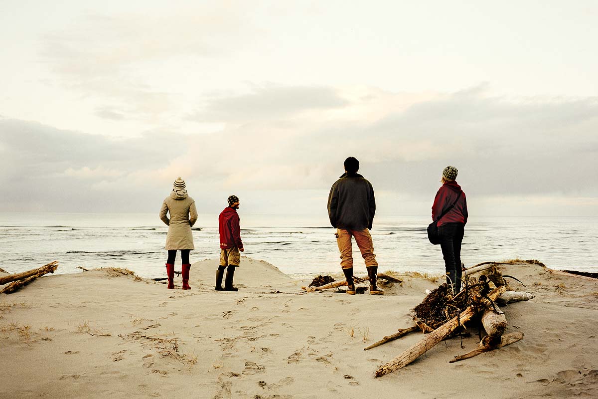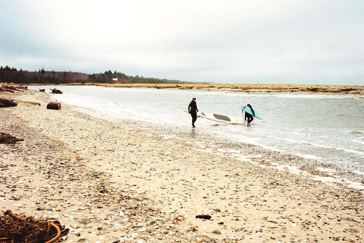 One sunny afternoon in January 2006, Pete, Richard, and the Mapper were bobbing in the break at the mouth of B.C.’s Sangan River. It was just the three of them. Waves, spun off by ocean storms 5,000 km away in Kamchatka, Russia, marched in orderly lines through Dixon Entrance. As the northwest swell hit the river outflow, it divided neatly into lefts and rights. A light southeaster was propping them up nicely. “Shoulder-high and glassy. A perfect longboard day,” recalls the Mapper now, more than a decade later, perhaps through the rose-tinted glasses of recollection. The land on the beachfront behind them had come up for sale, and Richard was thinking of selling his inland cabin and moving to the beach. Pete and the Mapper had already been asking Richard if he wanted to sell his backlot property to them. “On a scale of one to 10, how interested are you guys?” Richard asked. “Quite interested,” said the Mapper. “Ten,” said Pete. Boards bumping, they shared a round of handshakes through thick neoprene gloves. The deal was sealed, North Beach style.