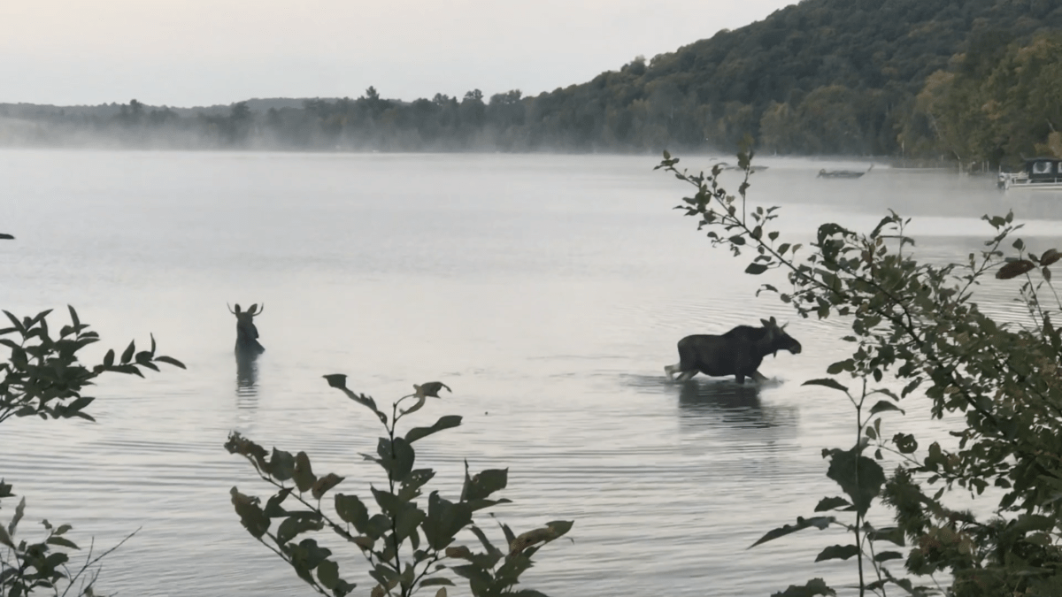 Early mornings by the dock are typically met with the sun rising, birds happily chirping, and a cup of coffee in hand. To their surprise, cottagers on Maple Lake Mark Newby and his father, were up early enjoying the lake view when they had a visit from two majestic moose, which left them in complete awe. Luckily for us, this foggy morning on Maple Lake in Carnarvon, Ontario was captured by Newby on video.