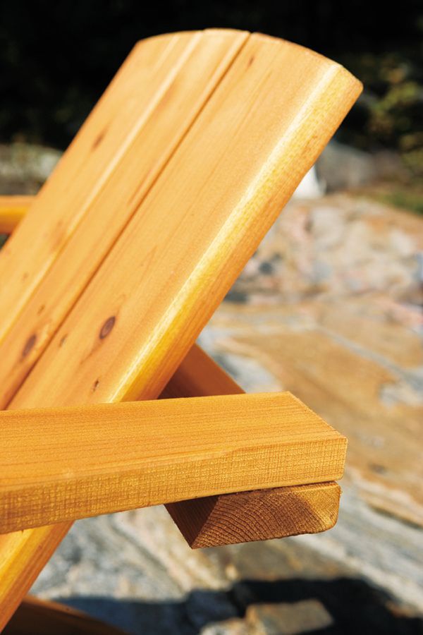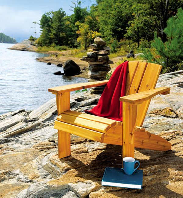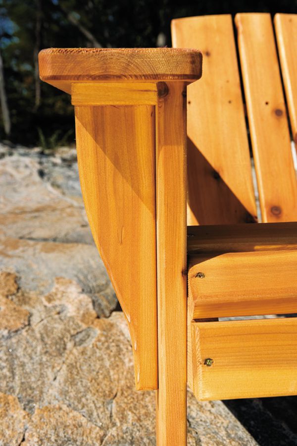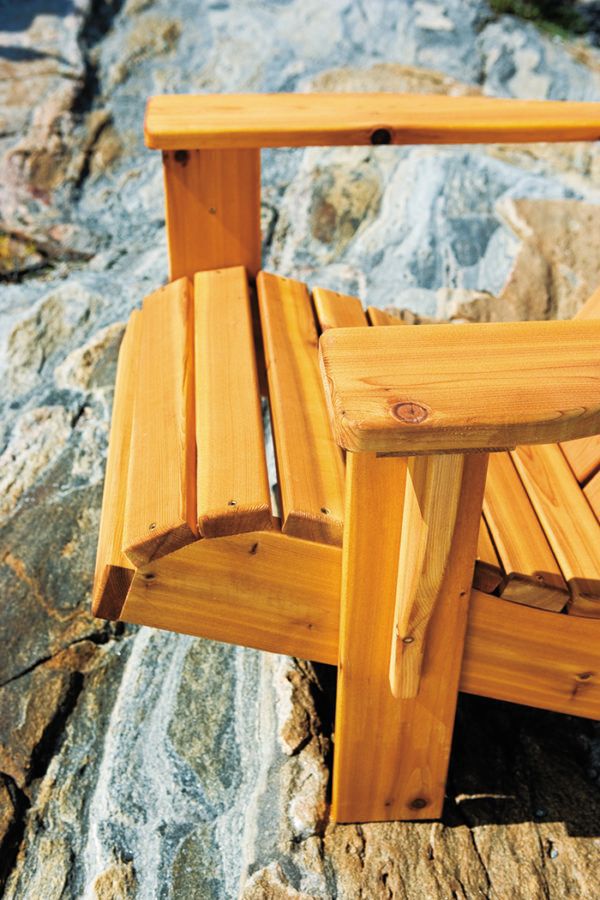 This version of a traditional Adirondack cottage chair has an unusual design: it’s easier to get in and out of this chair because of the offset arms, making it more accessible.