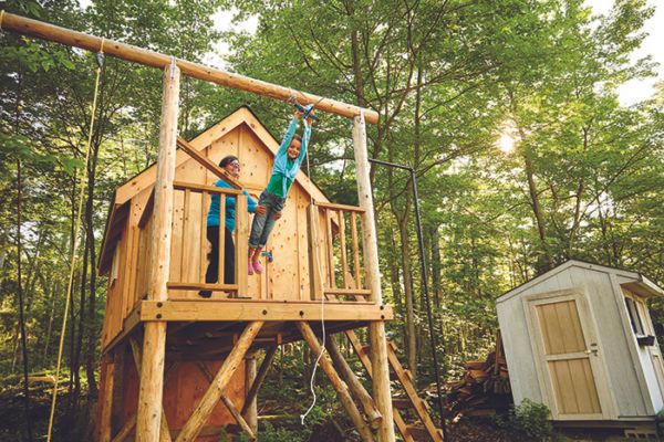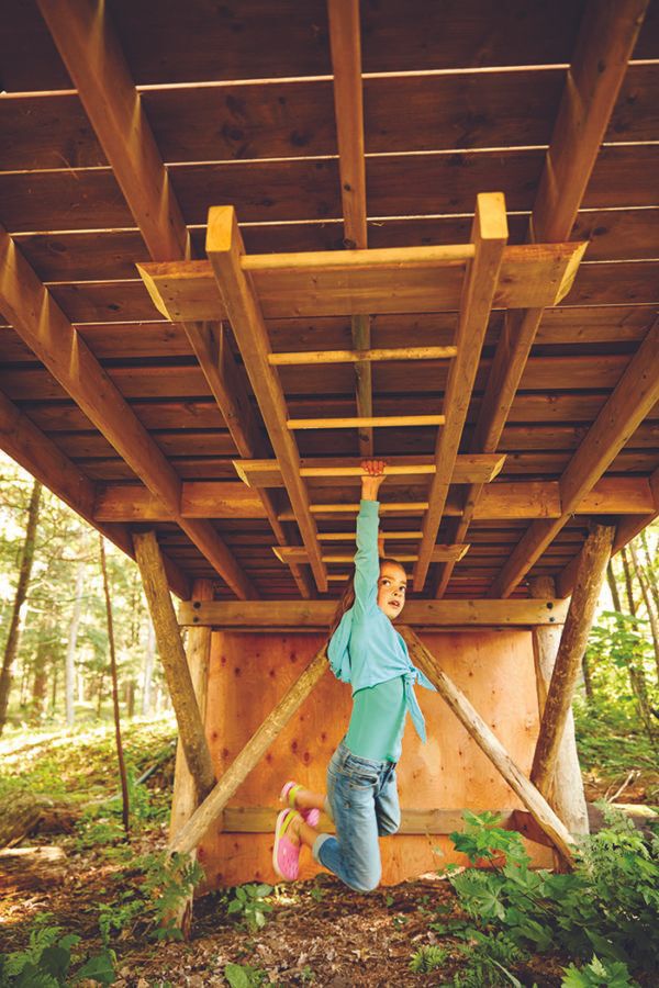 We tried to include everything we could in this playhouse project to maximize kids’ delight: zipline, swing, fire pole, climbing wall, monkey bars, bunk beds, folding table, secret escape hatch. It’s all here. A fun project to build, but you will need help.