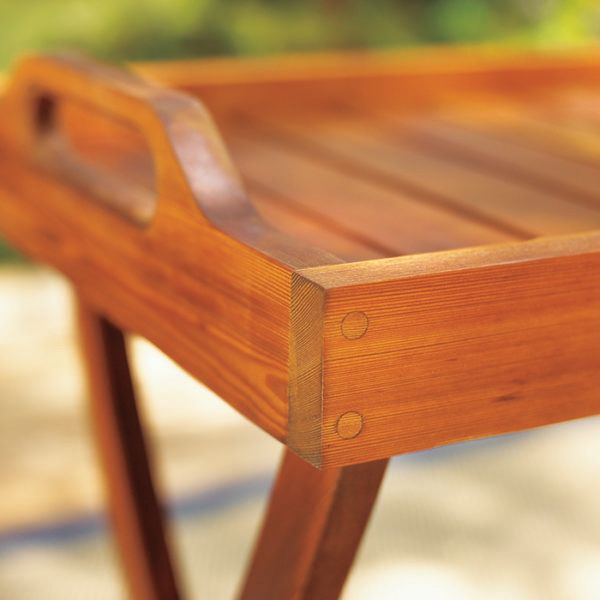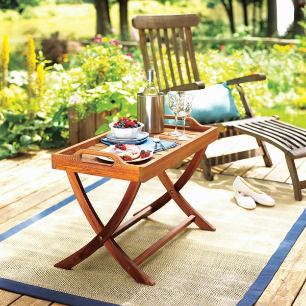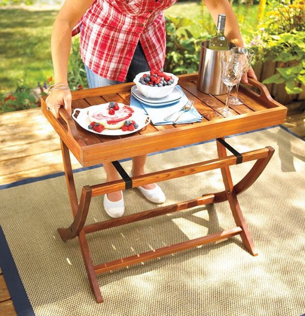Make your outdoor entertaining a little easier with this folding serving-tray table inspired by what caterers—the experts of professional entertainment—use: a stand with a removable tray.