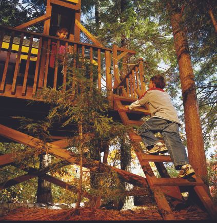 Designed with safety, stability, and tree health in mind, this tree house is freestanding, so you can build it anywhere. It’s a big project, but it’s fun, especially if you get the kids involved in planning and customizing it.