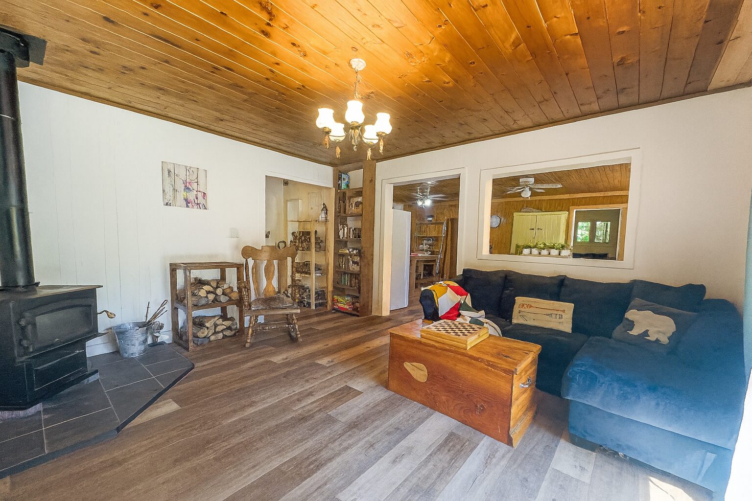 This three-bedroom, one-bathroom cottage sits along the Irondale River in Minden Hills, Ont. The main cottage features an open-concept kitchen and dining area, a cozy living room with a wood stove, and a screened-in porch. One of the bedrooms is located in a unique screened-porch space surrounded by trees and nature. The bathroom is fitted with heated floors to keep cottager toes warm year-round. Outside, a spacious deck is made for unwinding and outdoor dining, while a bunkie provides two extra sleeping spaces for guests. The cottage property features a brand-new dock, heated waterline, new septic system, and recently updated kitchen.