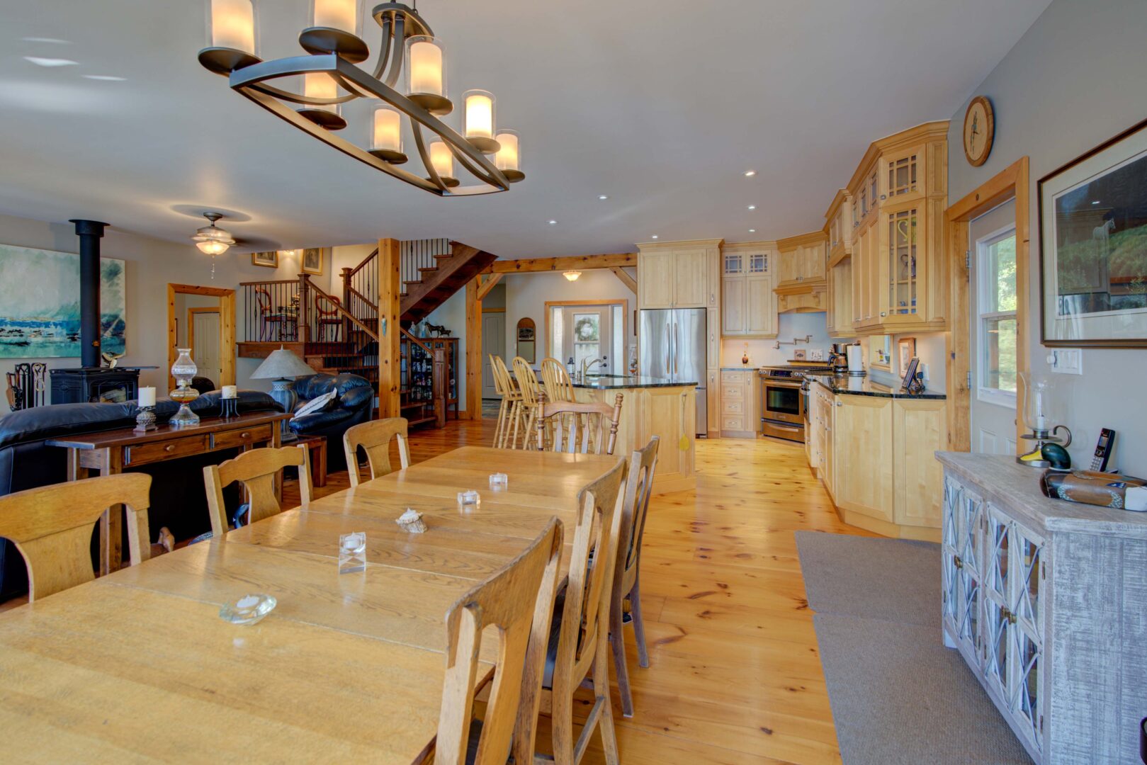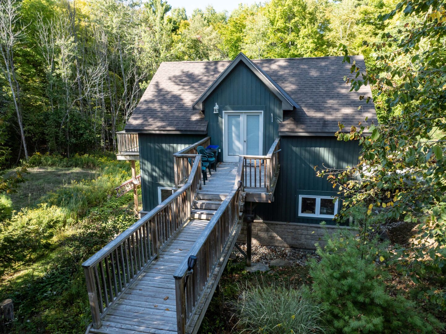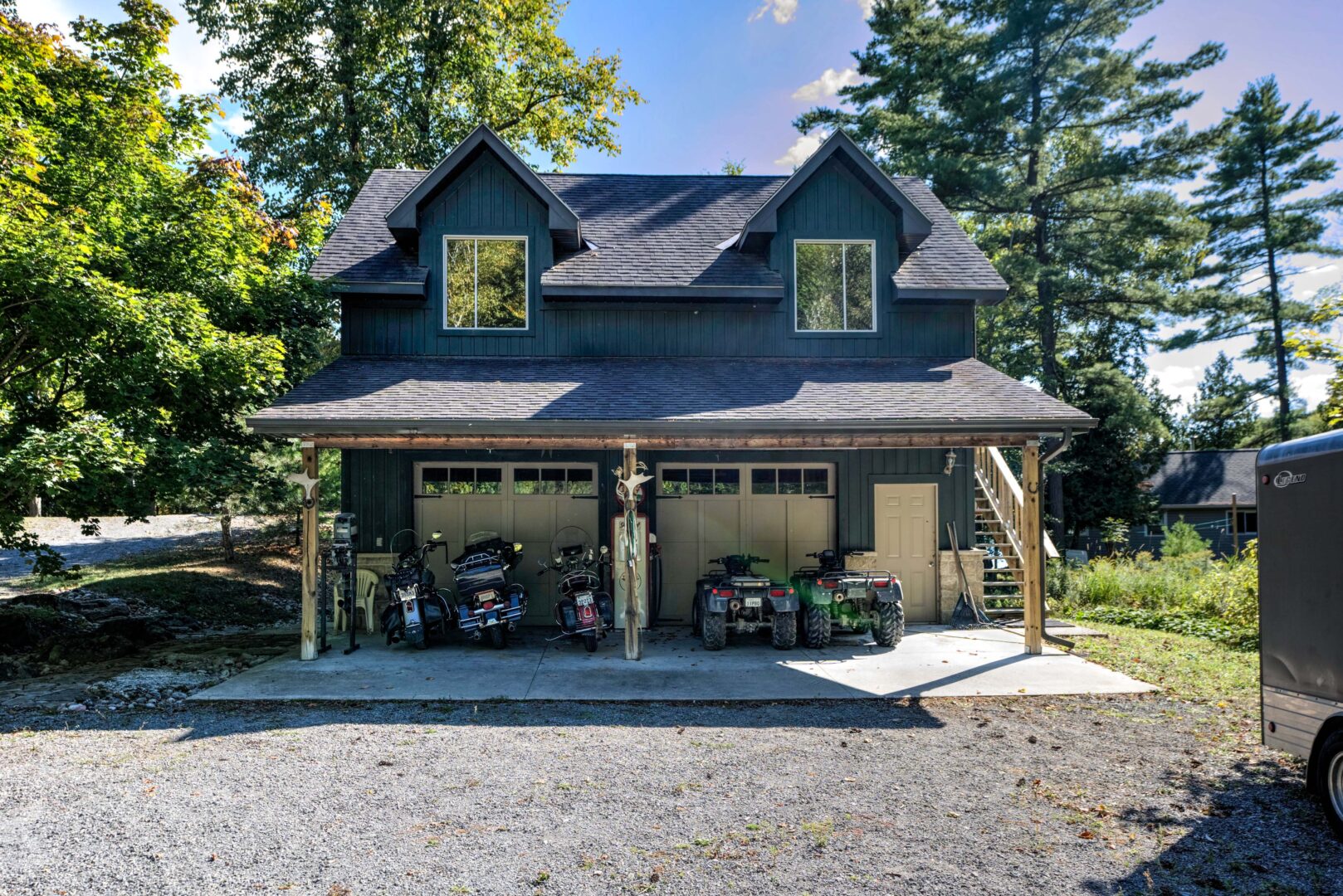 This three-bedroom, two-bathroom cottage is located at the north end of Buck Lake overlooking a sprawling bay with picturesque views. Situated on more than two acres of land and boasting 200 feet of private shoreline, the property features shallow entry into the lake, a large aluminium dock, and a covered boat slip. A custom-built tiki bar is located right on the water, perfect for entertaining guests and hosting happy hours. Inside the cottage, the main floor has an open-concept kitchen, a dining room, and a living room with direct access to the back deck. You’ll find the main bedrooms on the top floor as well as a laundry room and an office that could be converted into additional sleeping space. A bunkie that also functions as a detached two-car garage is connected to the main cottage via a catwalk, and it includes an extra bedroom, a two-piece bathroom, and a small kitchenette. With its deep, clear waters, Buck Lake is home to trout, pike, and large and smallmouth bass, making it an ideal choice for anglers.