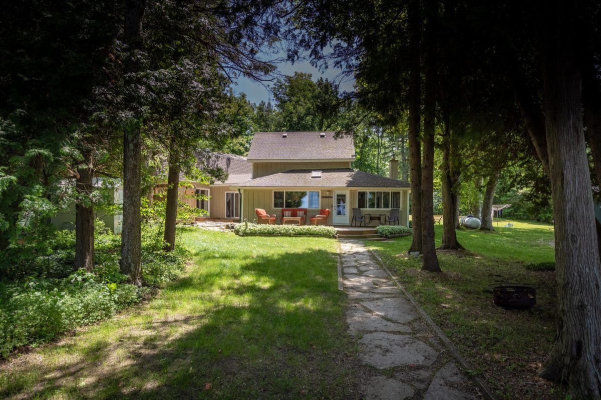 If you visit in the summer or fall, you can enjoy all the outdoor space this property has. A dining set, BBQ, and fire pit with Muskoka chairs makes for a total Cottage Life-approved set up.