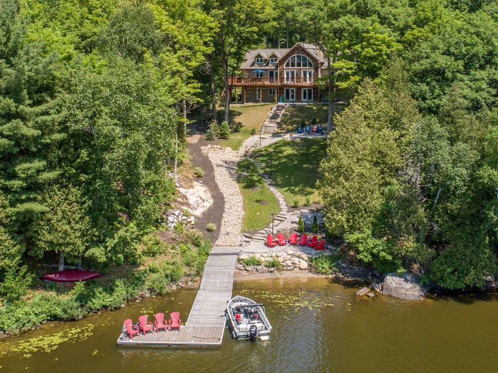 Extras:Â With 3,500 sq. feet of indoor space located on 1.75 acres, this cottage has everything you need to host a big group. There is a games room with a ping pong table, a big BBQ on a wrap-around deck, a long dock with both shallow and deep water access, a fire pit, plus enough Muskoka chairs for everyone.