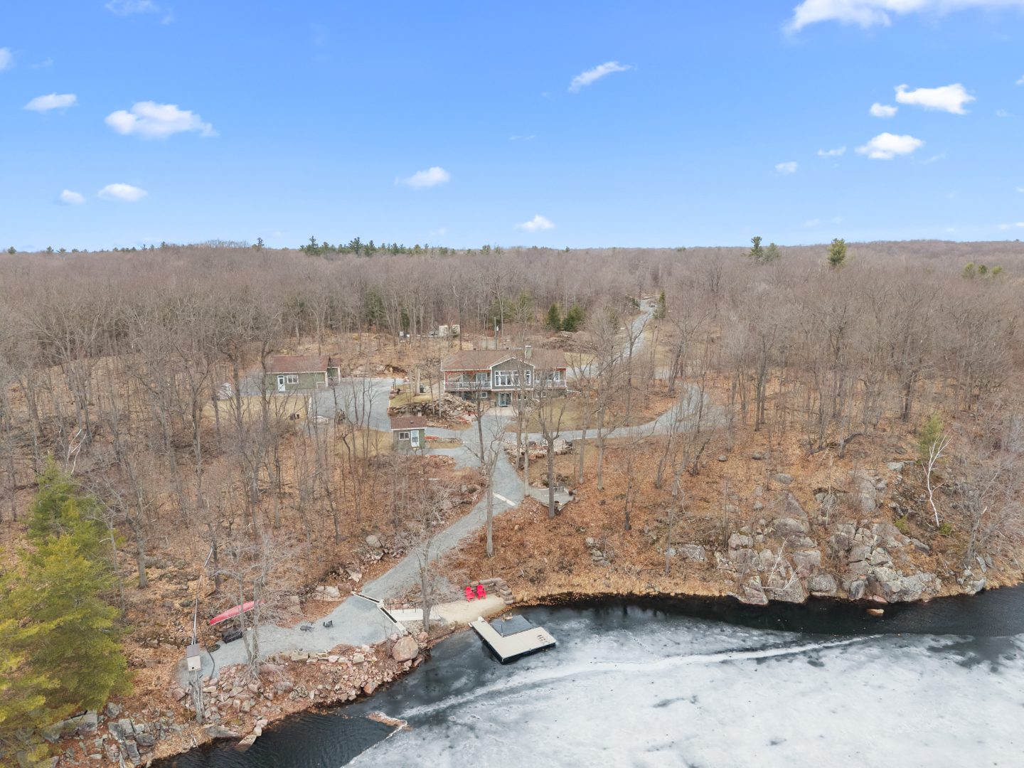 Set on approximately 13 private acres with more than 500 feet of shoreline on serene, non-public Fermoy Lake, this custom waterfront bungalow offers a rare blend of refined comfort and natural beauty. Surrounded by mature hardwood forest and designed to complement its setting, the home captures breathtaking south-facing lake views and sunlight through expansive windows and soaring vaulted ceilings.