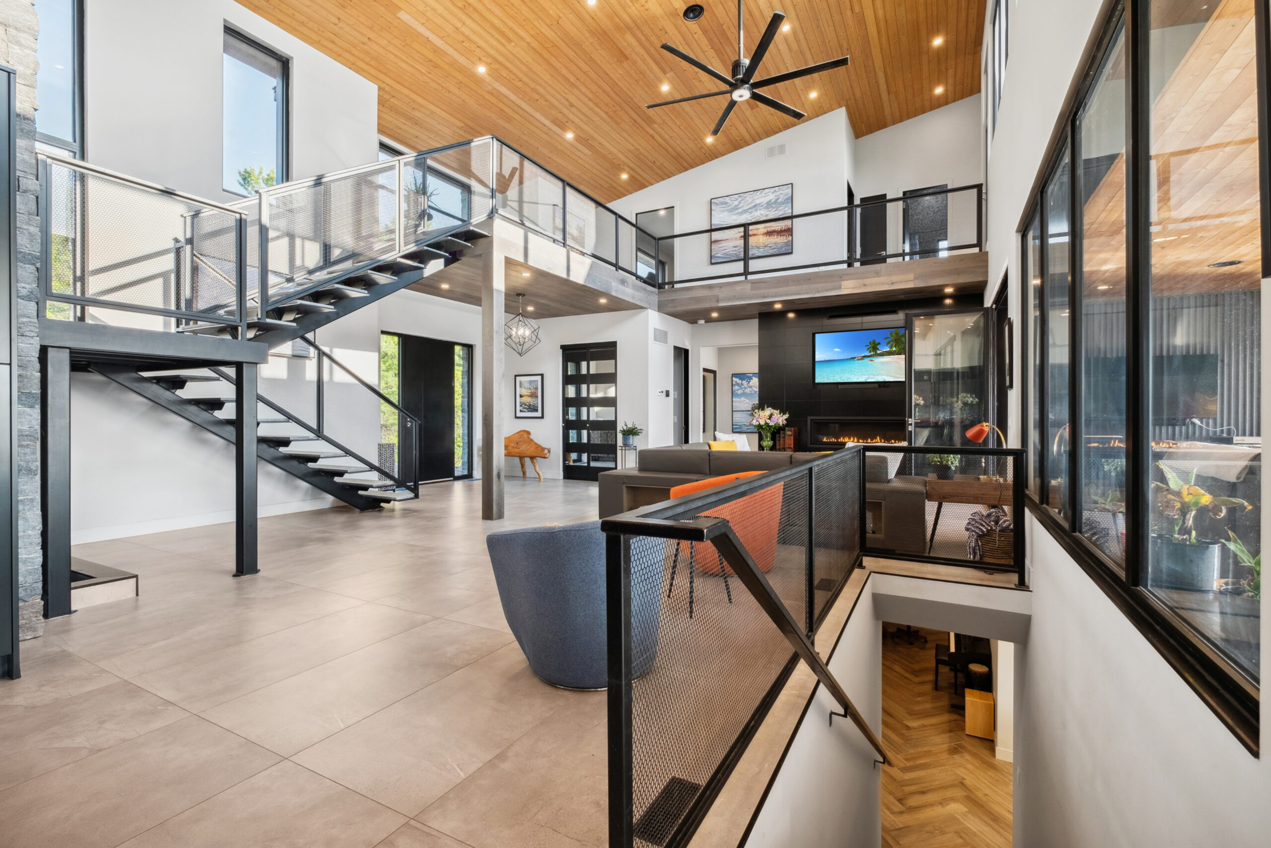 The estate is designed for ultimate comfort and convenience, featuring ICF construction, architectural steel siding, natural stone exteriors, and a durable steel roof. Inside, in-floor heating and air conditioning ensure year-round climate control, while high-end appliances, a hot tub, and a steam sauna elevate your indulgent lifestyle. The property is equipped with a state-of-the-art Control4 home automation system and full Sonos audio for seamless modern living.