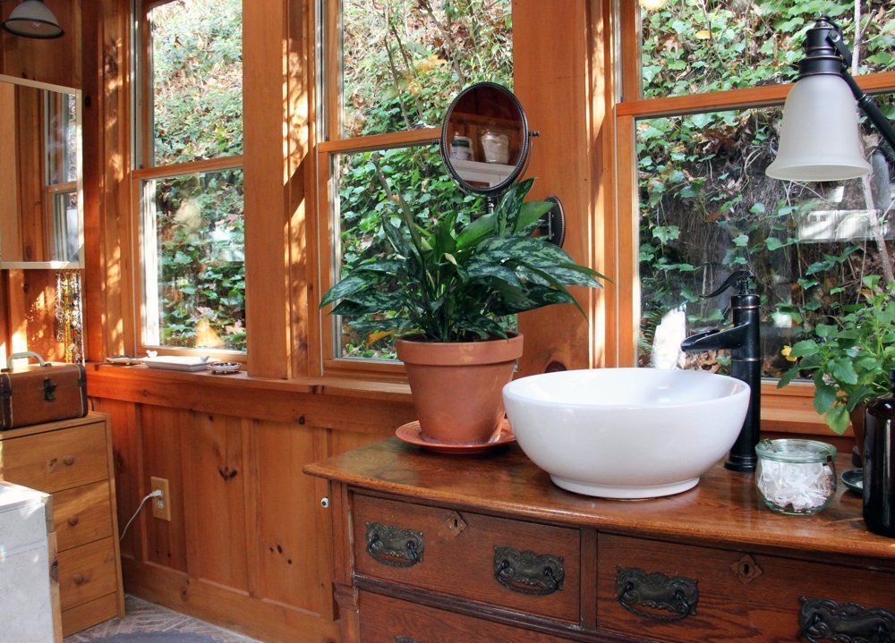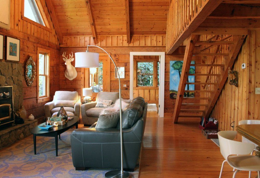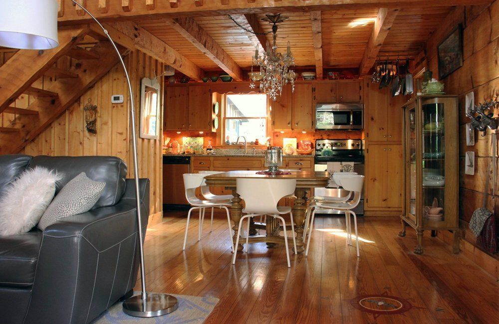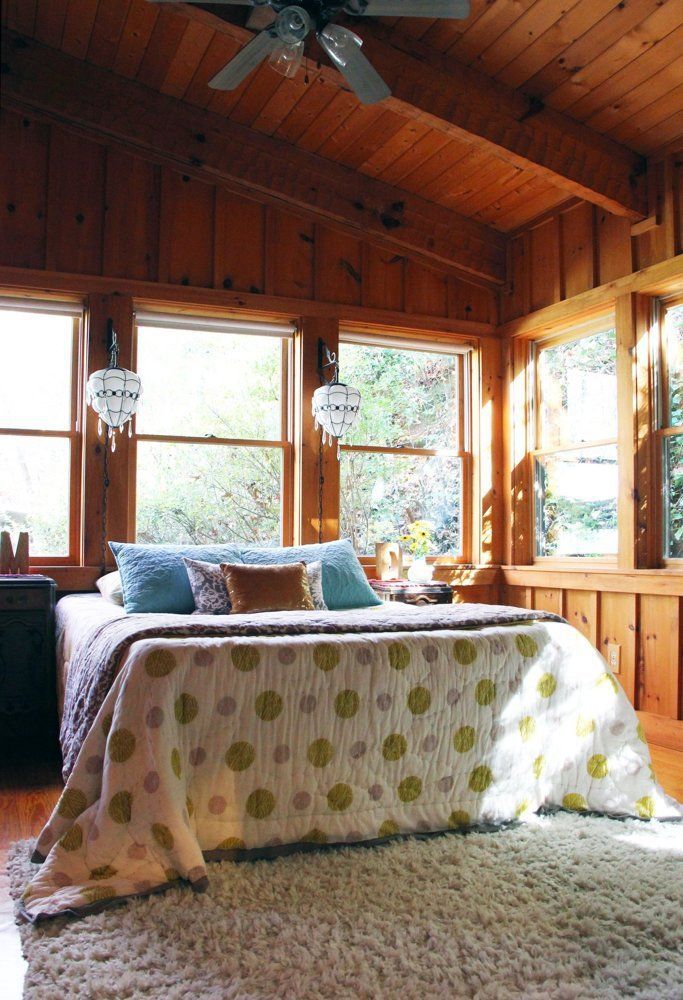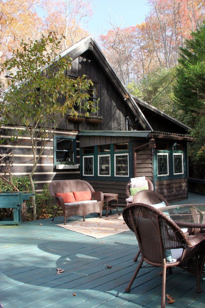Three years ago, Mia Cefkin and her husband David swapped their urban Florida home for this tiny cabin tucked away in rural North Carolina. Since then, the couple have built several additions to the original home, including a light-filled master bedroom and a compact room off the deck for year-round hot-tubbing. Although the space is filled with contemporary features like modern furniture and crystal chandeliers, the cabin’s original character is very much in-tact. In fact, Mia had to swear off her love of paint because she couldn’t bear to cover the natural wood walls!
