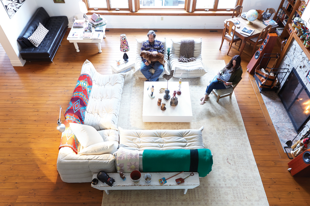 That’s not to say she’s the only collector in the family. The hundreds of CDs flanking the fireplace and the terabyte of music on his Mac are Howard’s contribution. “His music is the salt and pepper on top of it all. He has the best playlists,” says Dyan. “He designs some to work with nature—the wind, the leaves, the water, the chirping, and the music, all melding together.” He also has a fondness for rock T-shirts, Dyan says (“New ones, not vintage”). And as for his collection of handmade Canadian knives, he explains: “I used to take Dyan to antique shows, in hopes I’d be able to drag her away at some point. I had to look at something while I was waiting.”