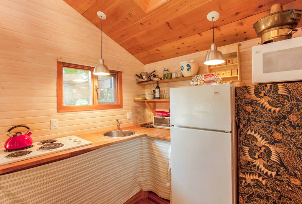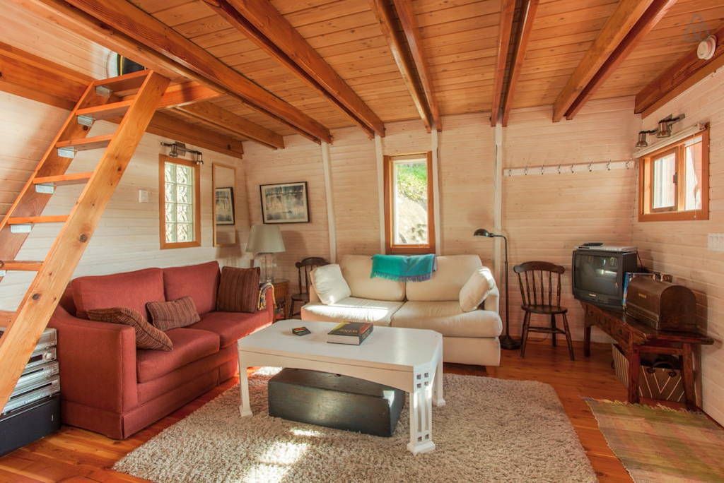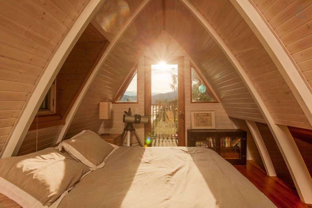 Tucked away on British Columbia’s Sunshine Coast, the small town of Sechelt (population: 8,454) is a summer destination known for its kayaking, mountain biking, hiking, fishing—and adorable A-frame cabins. This retreat, which is only $90 per night to rent, features double balconies, fantastical bendy beams,a light-filled bathroom with a clawfoot bathtub and a bedroom loft that boasts beautiful views of the mountains. Best yet, although it’s surrounded by trees, the cabin is located only a three-minute walk from the beach.