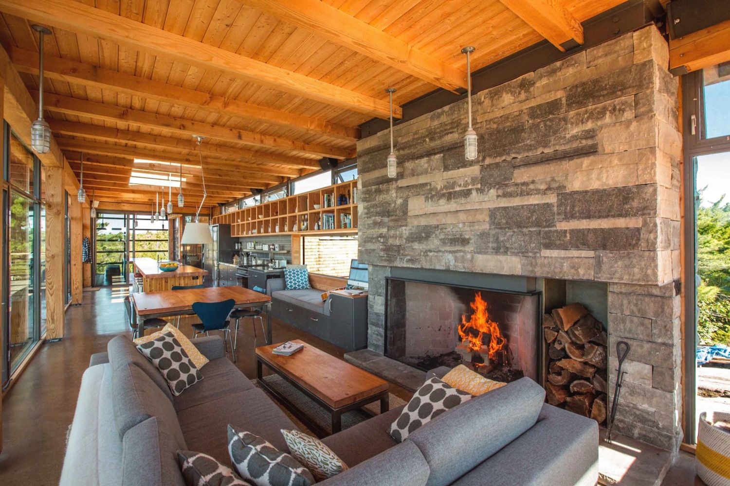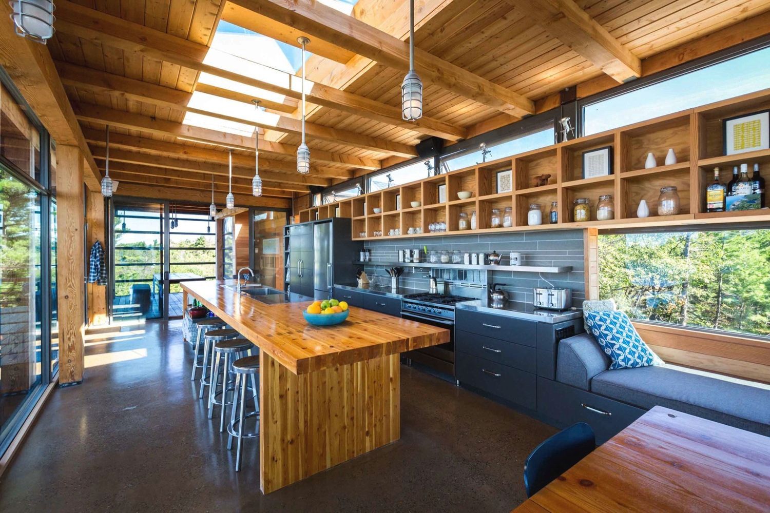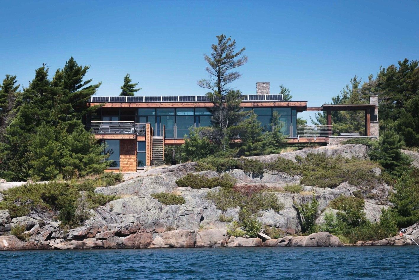 A cottage on a remote island has many perks: plenty of privacy, large properties and a true sense of tranquility. Even if you need to build from scratch, this beautiful cottage proves that boat-only access isn’t necessarily a setback. To build this cottage, which is located on Georgian Bay’s Monument Channel, contractors barged in all the materials, from giant Douglas fir beams to the large glass window panes. Designed by Toronto-based firm Core Architects, the cottage is fully self-sufficient too. It produces all its own electricity from solar panels and treats it own wastewater with a bio-filter septic system. On top of the eco-friendly benefits, the cottage features two fireplaces, a sleek kitchen and a swoon-worthy patio. It’s safe to say, we’re ready to get on island time.